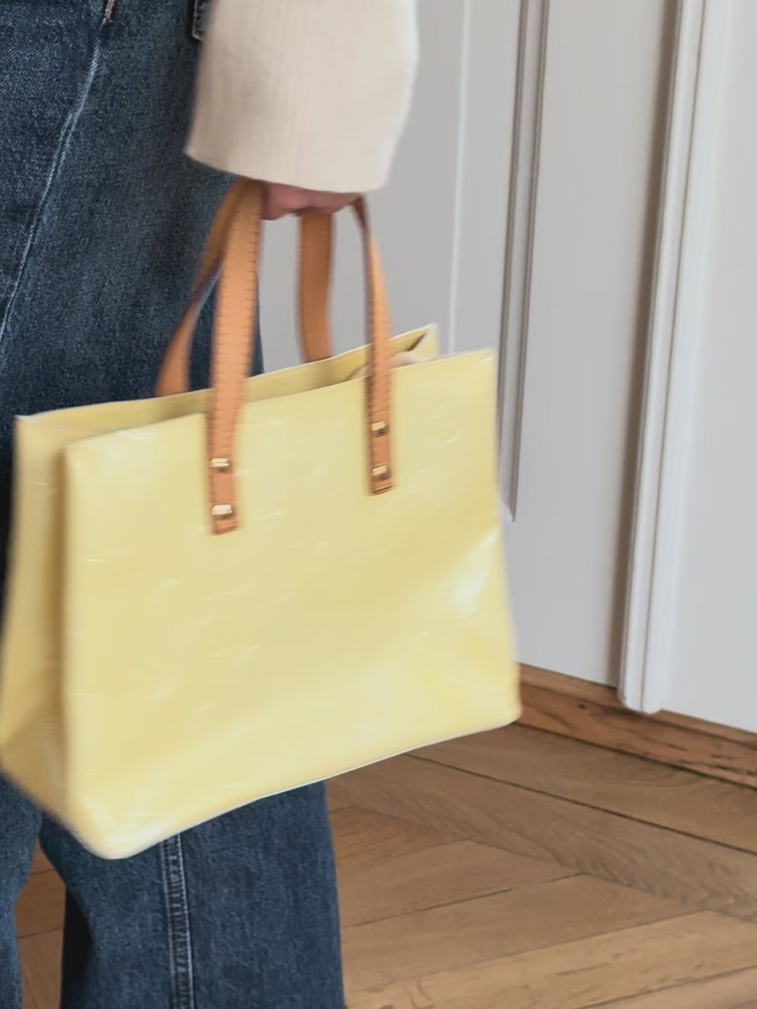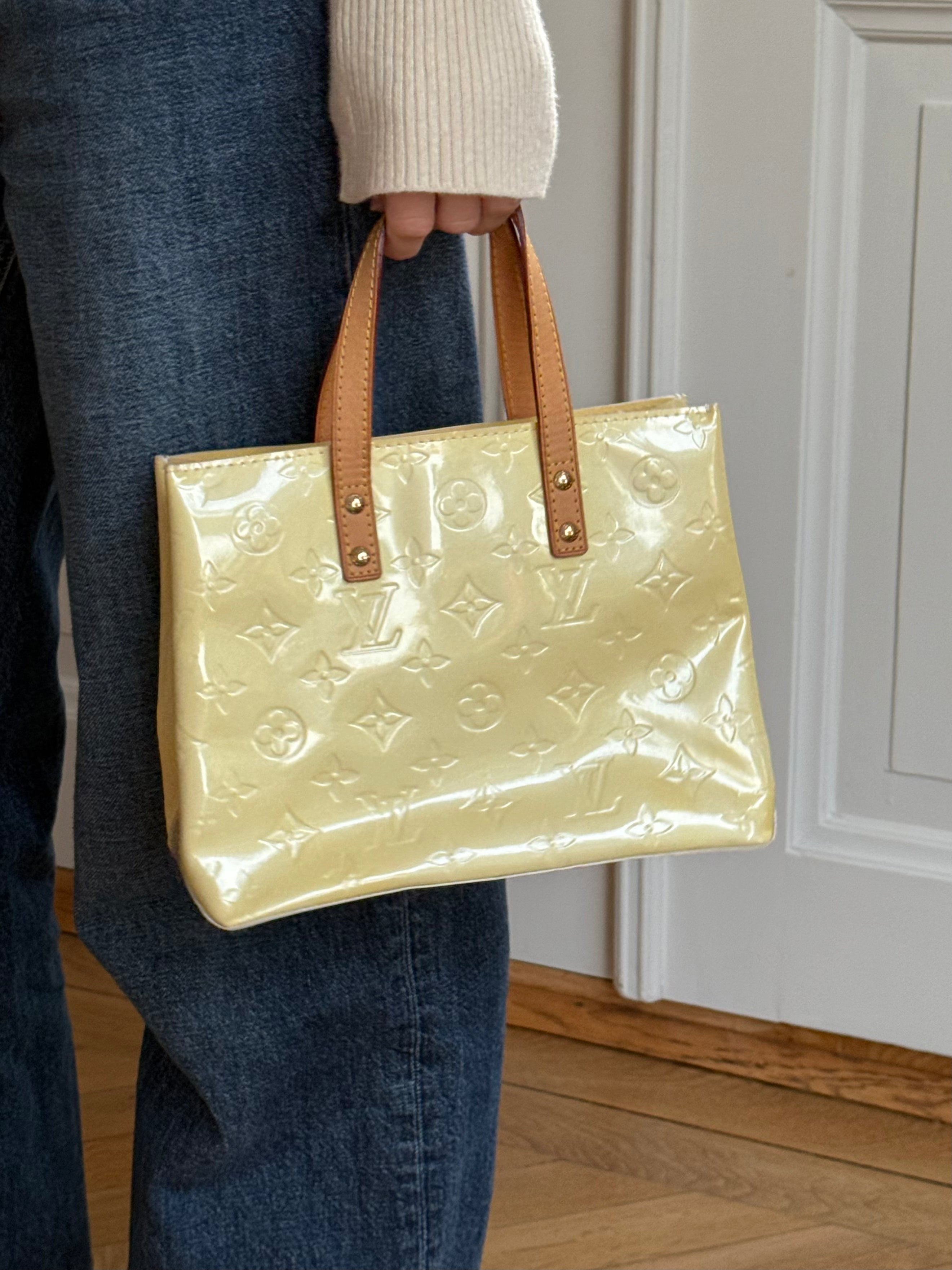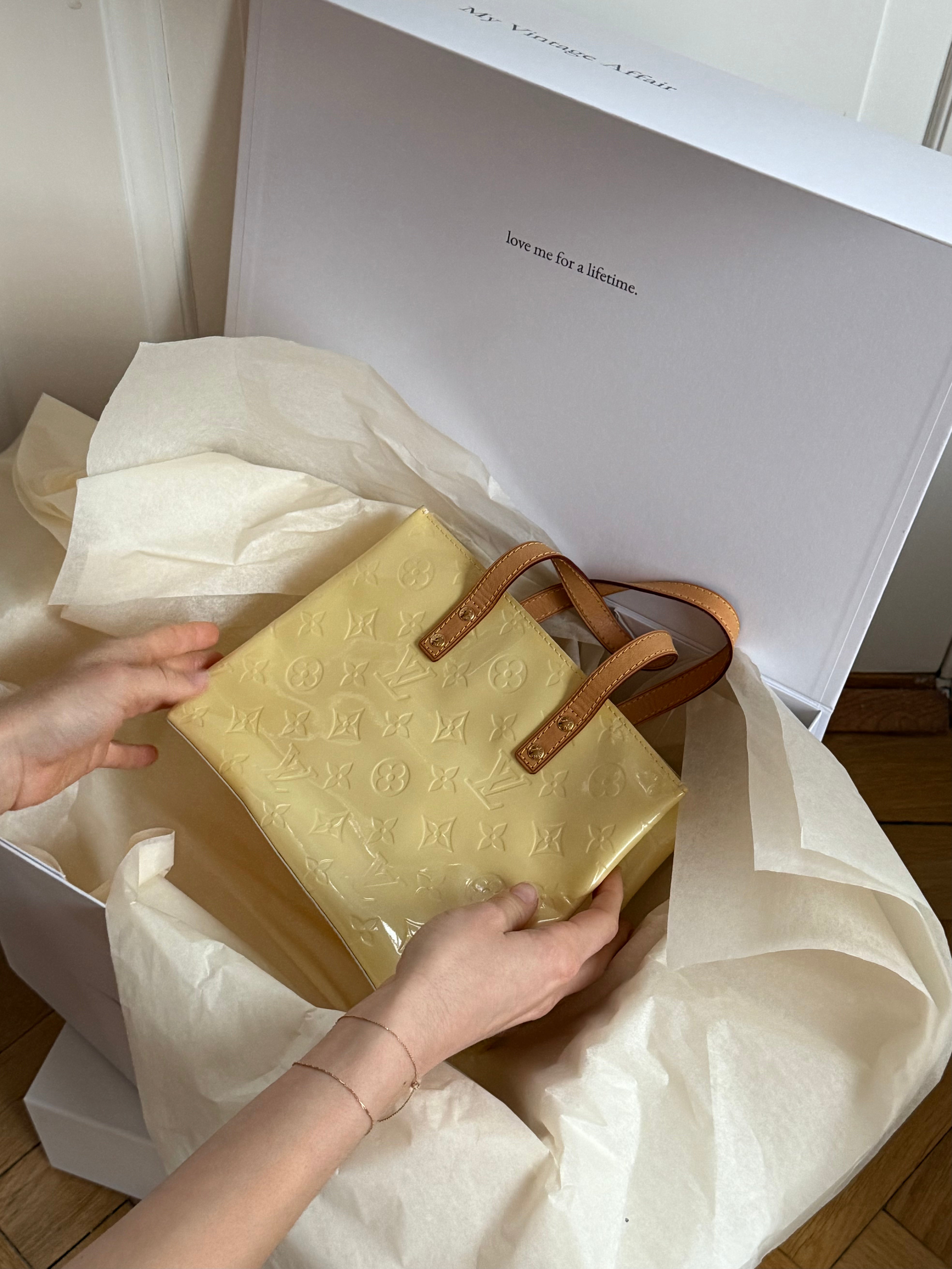 Cute vintage Louis Vuitton Monogram Vernis bag with brown leather handles in very good condition. The bag comes with the original dust bag and tags.
