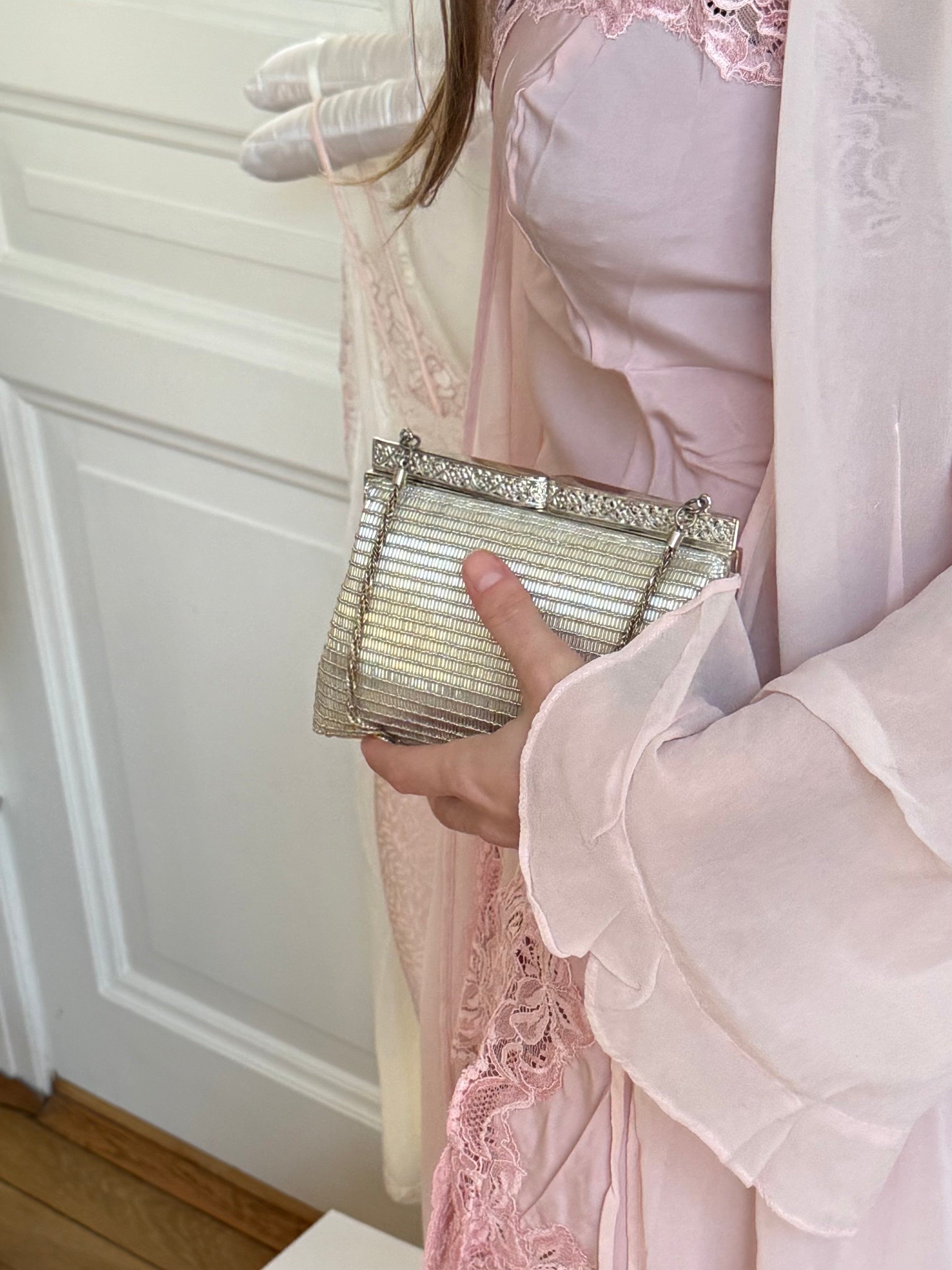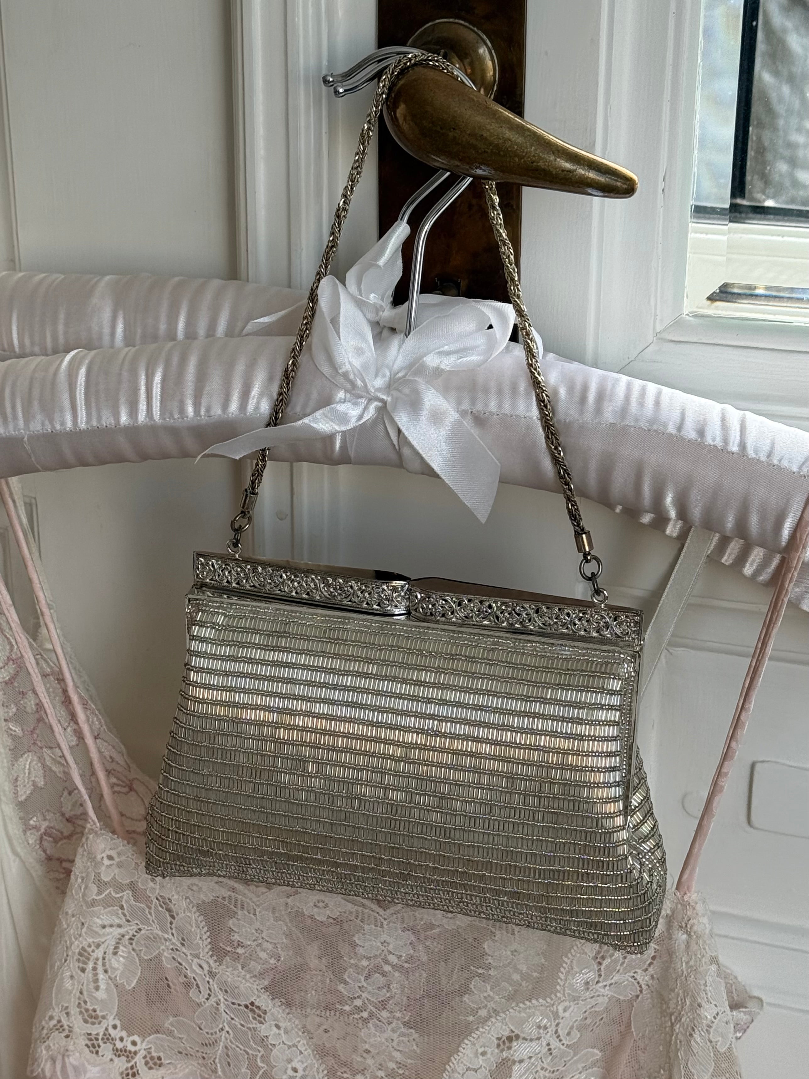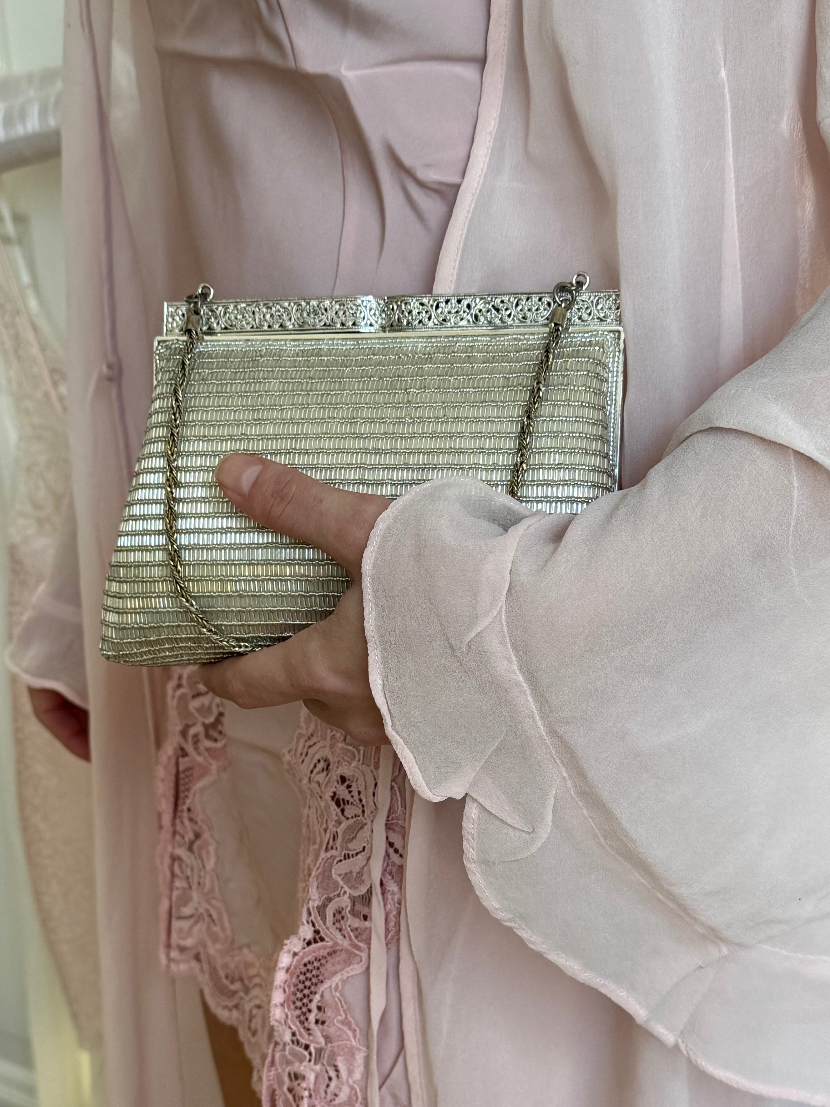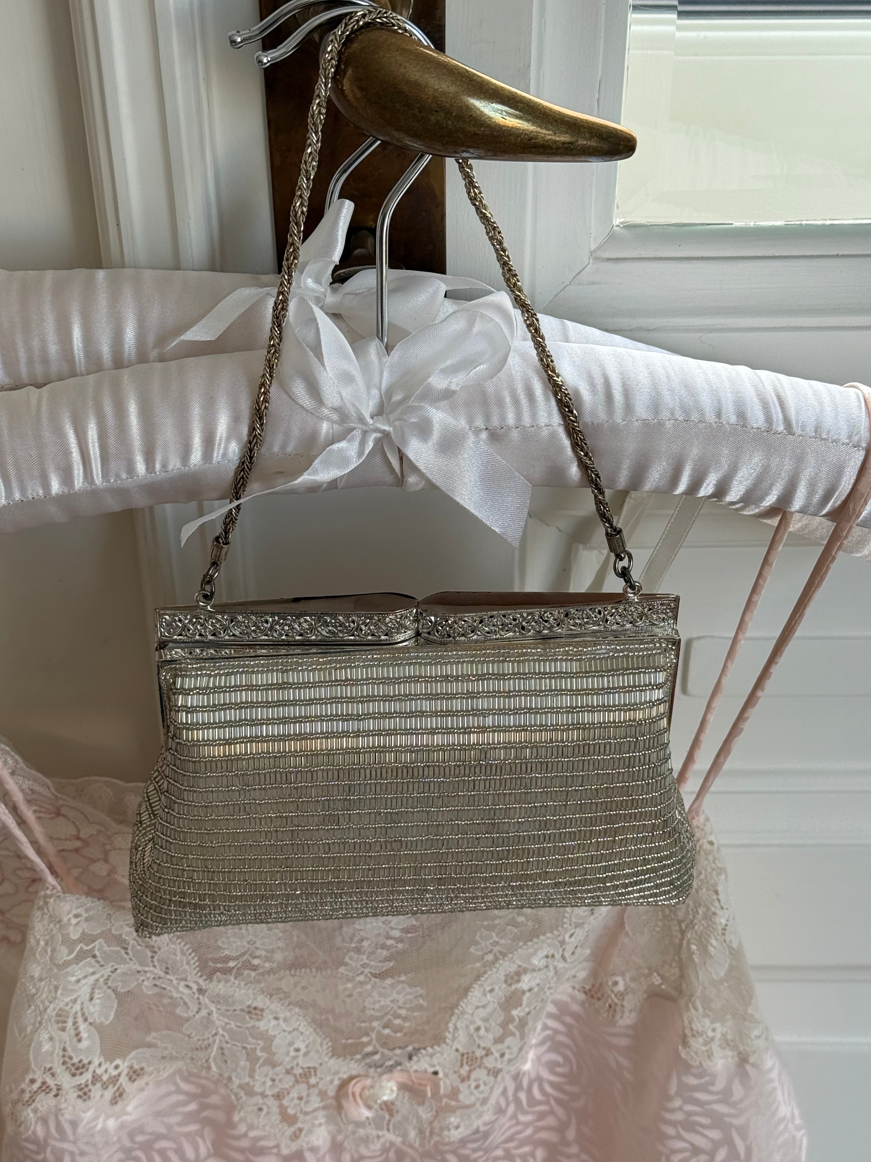 Beautiful vintage silver evening bag with delicate beading.