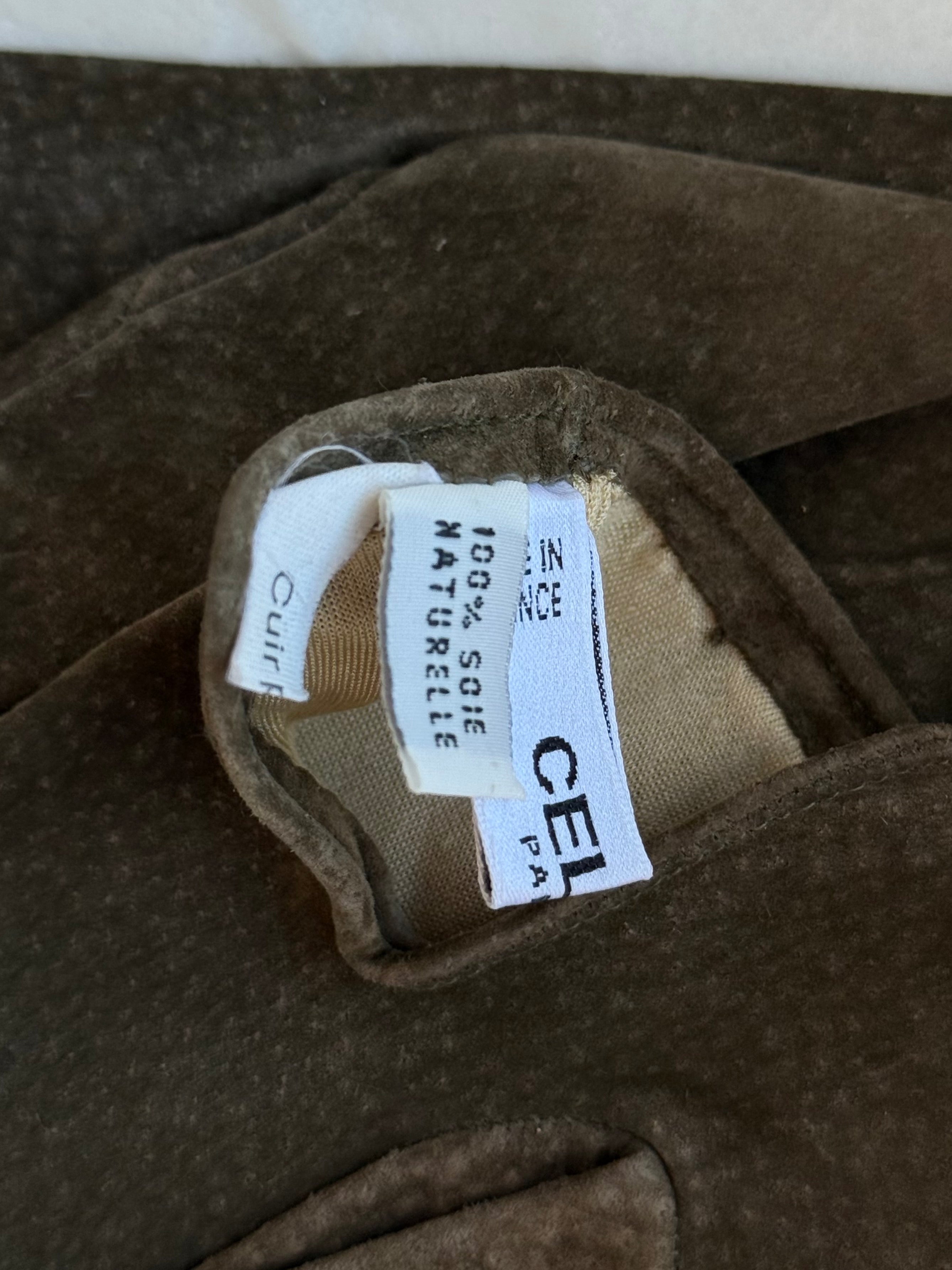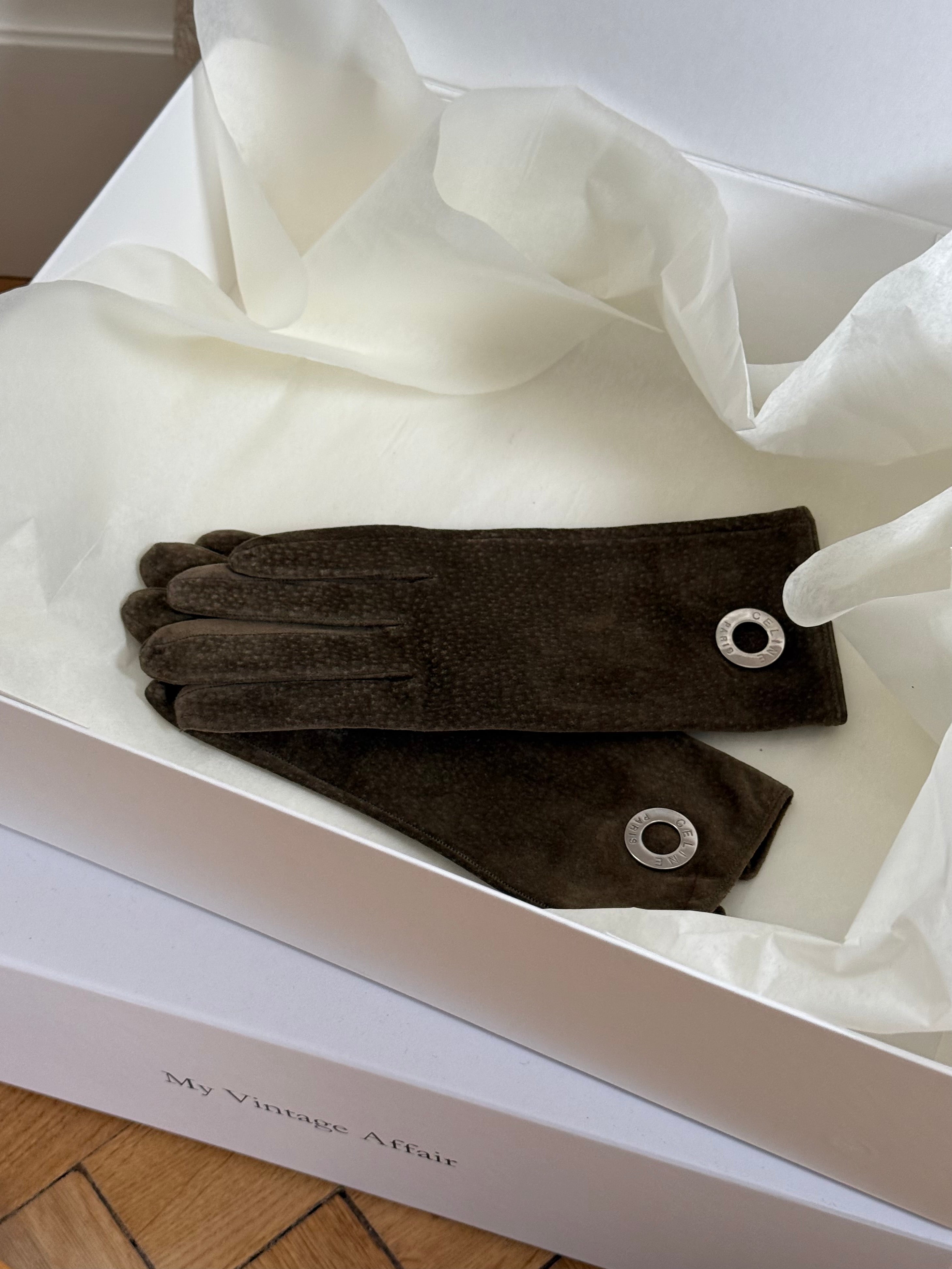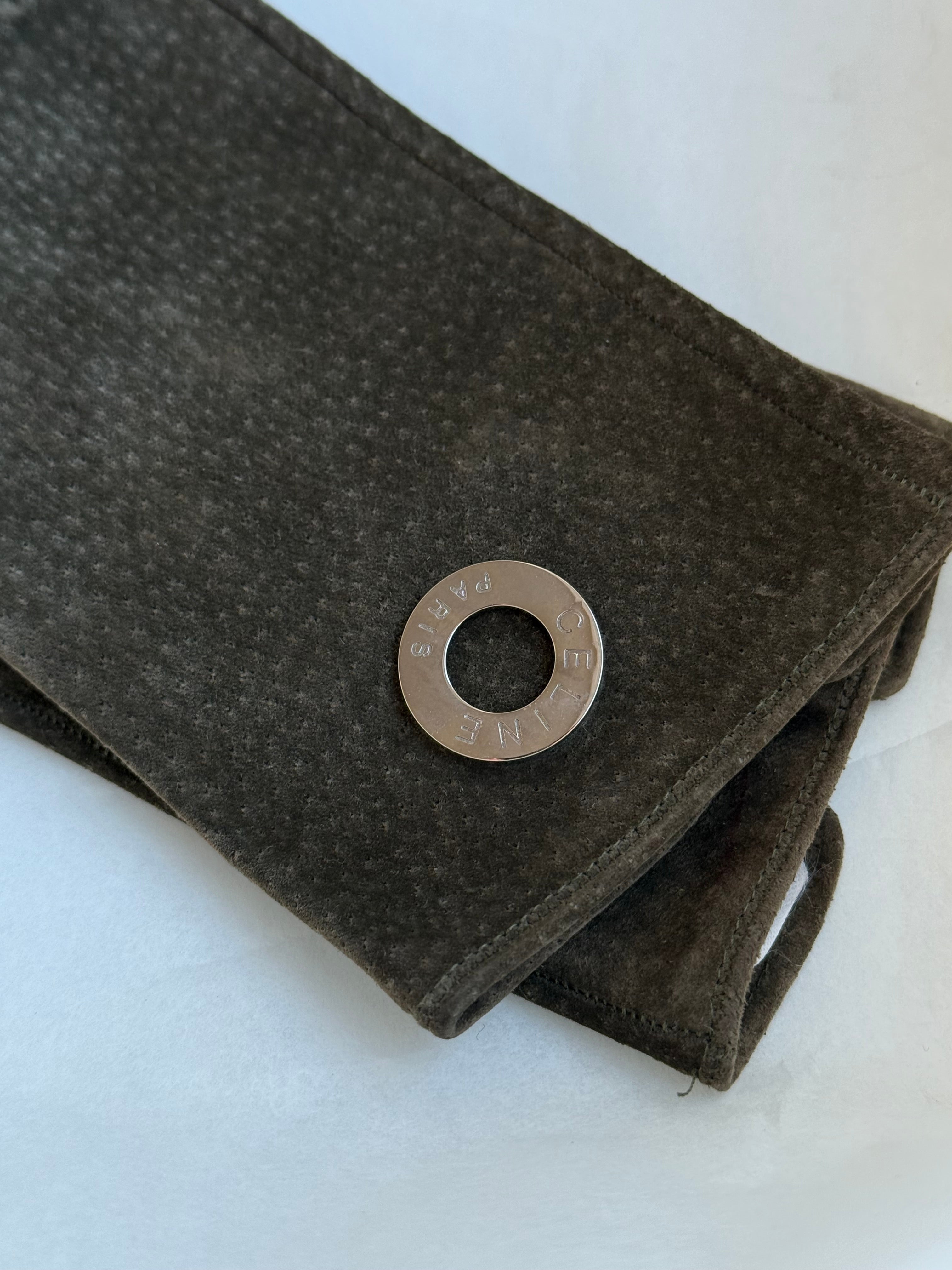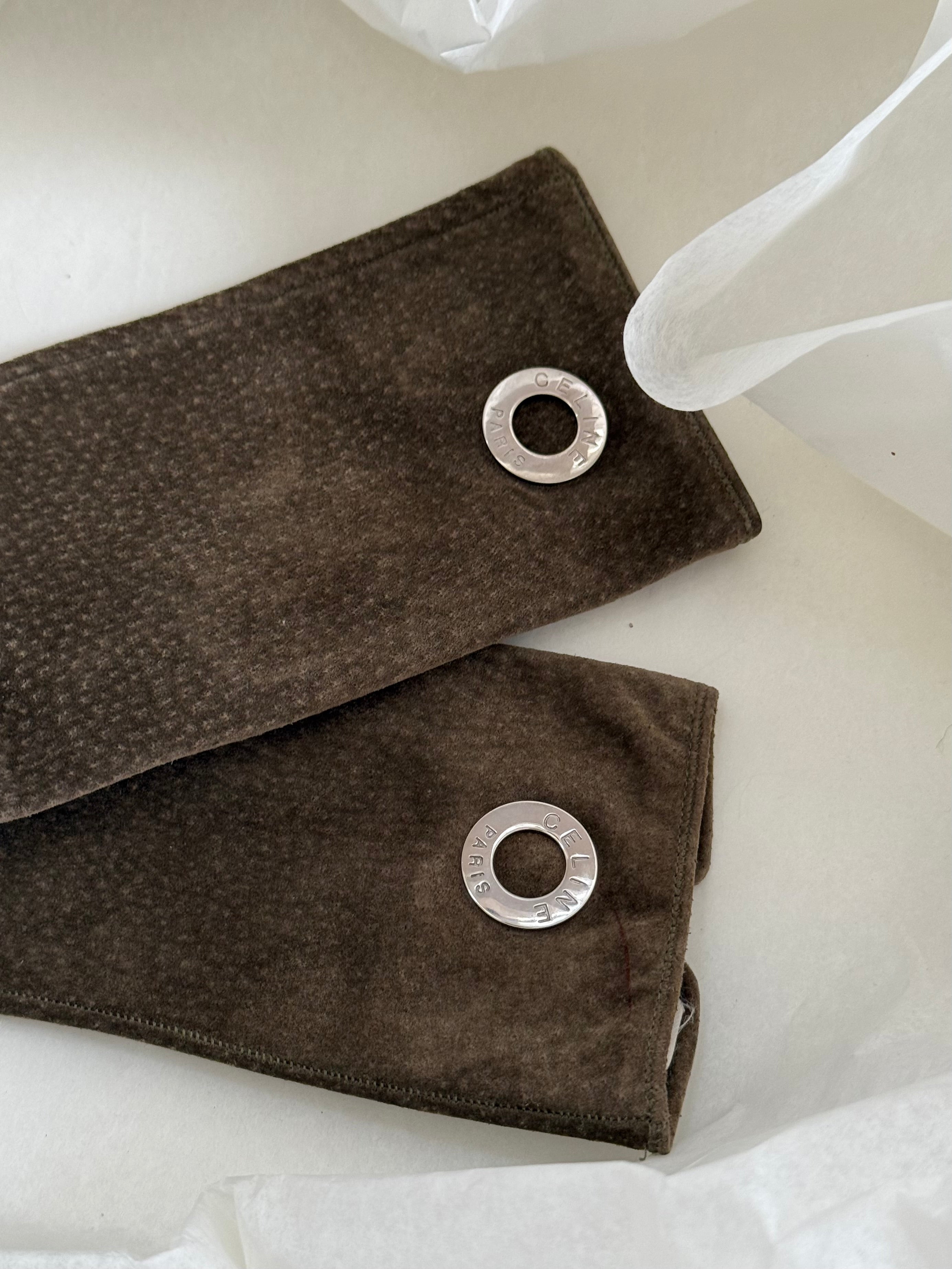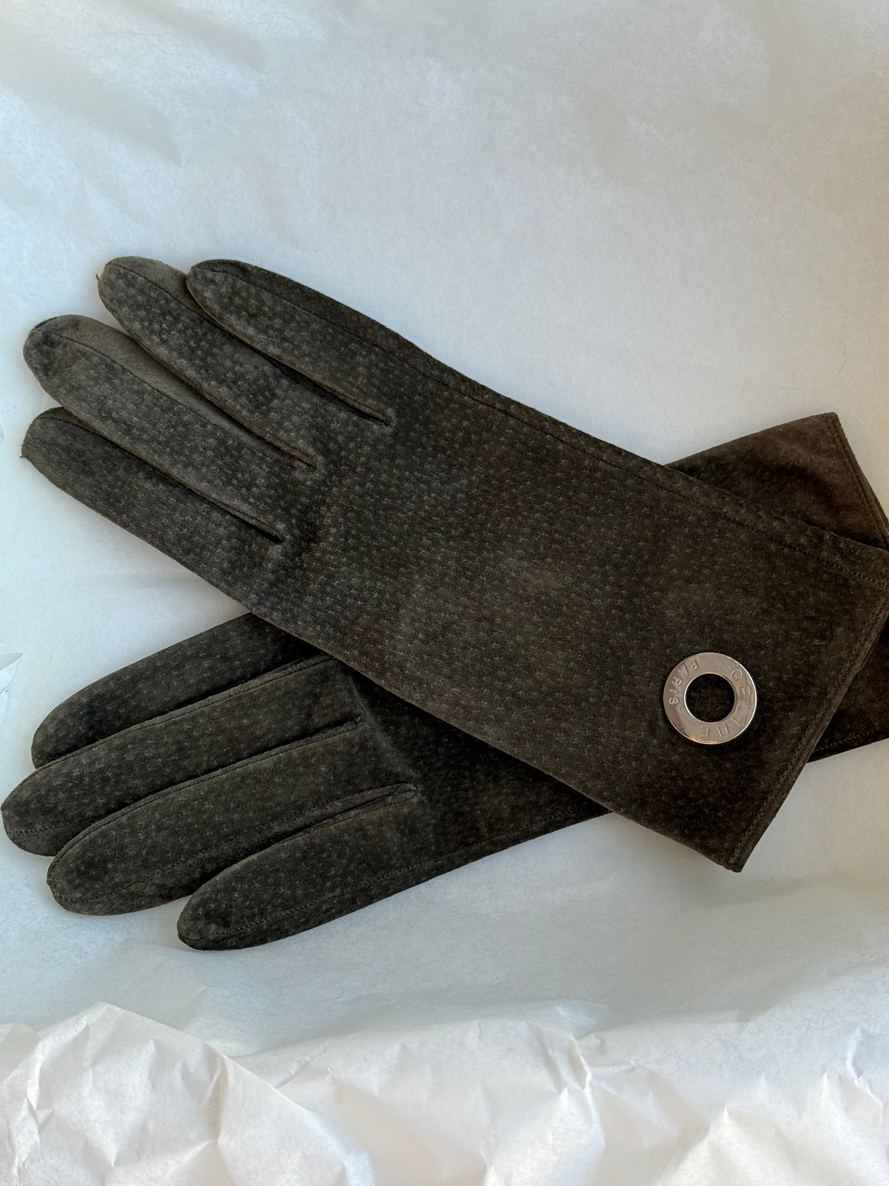 Beautiful vintage Celine gloves in suede with silk lining.