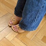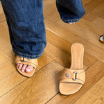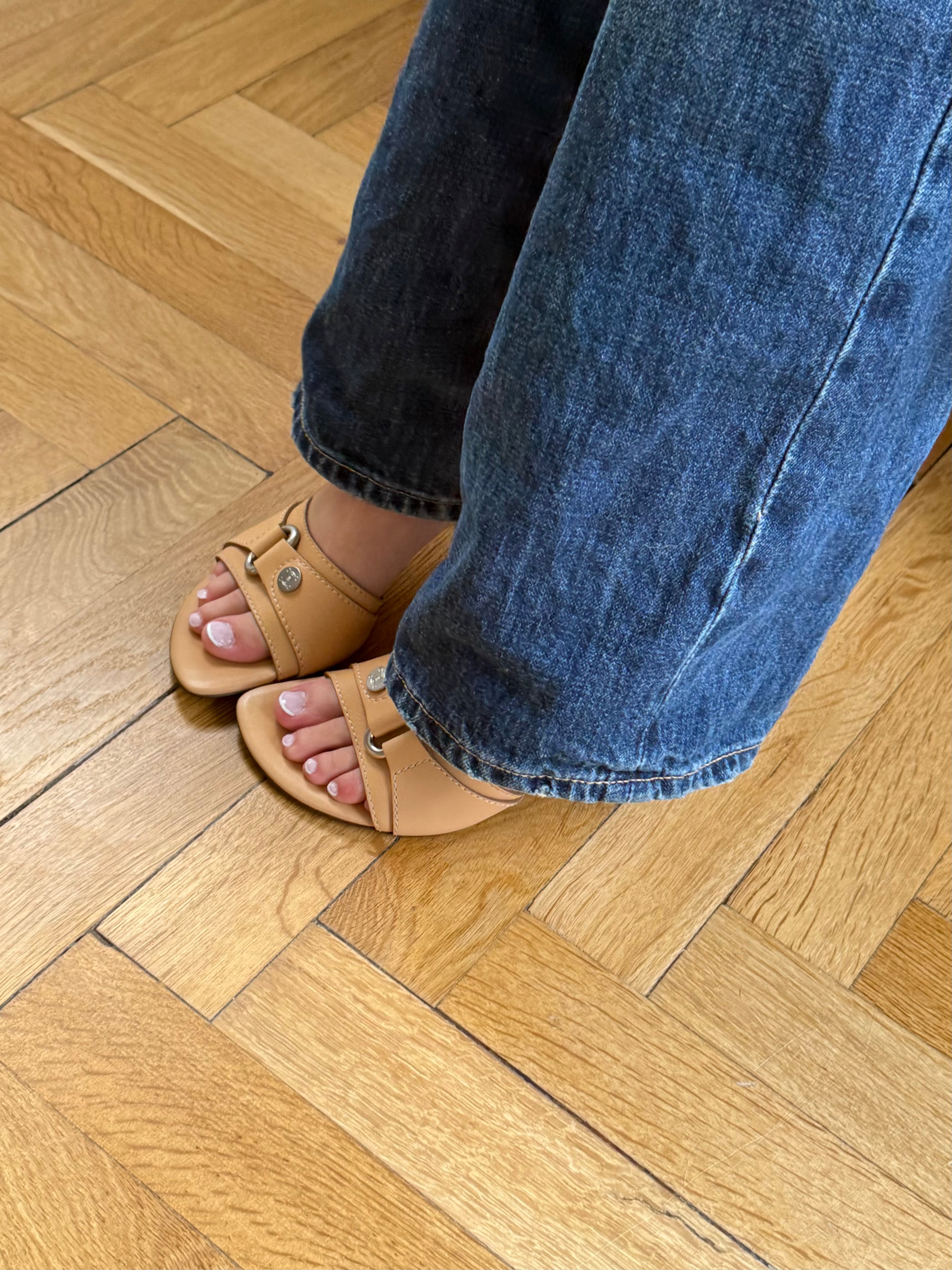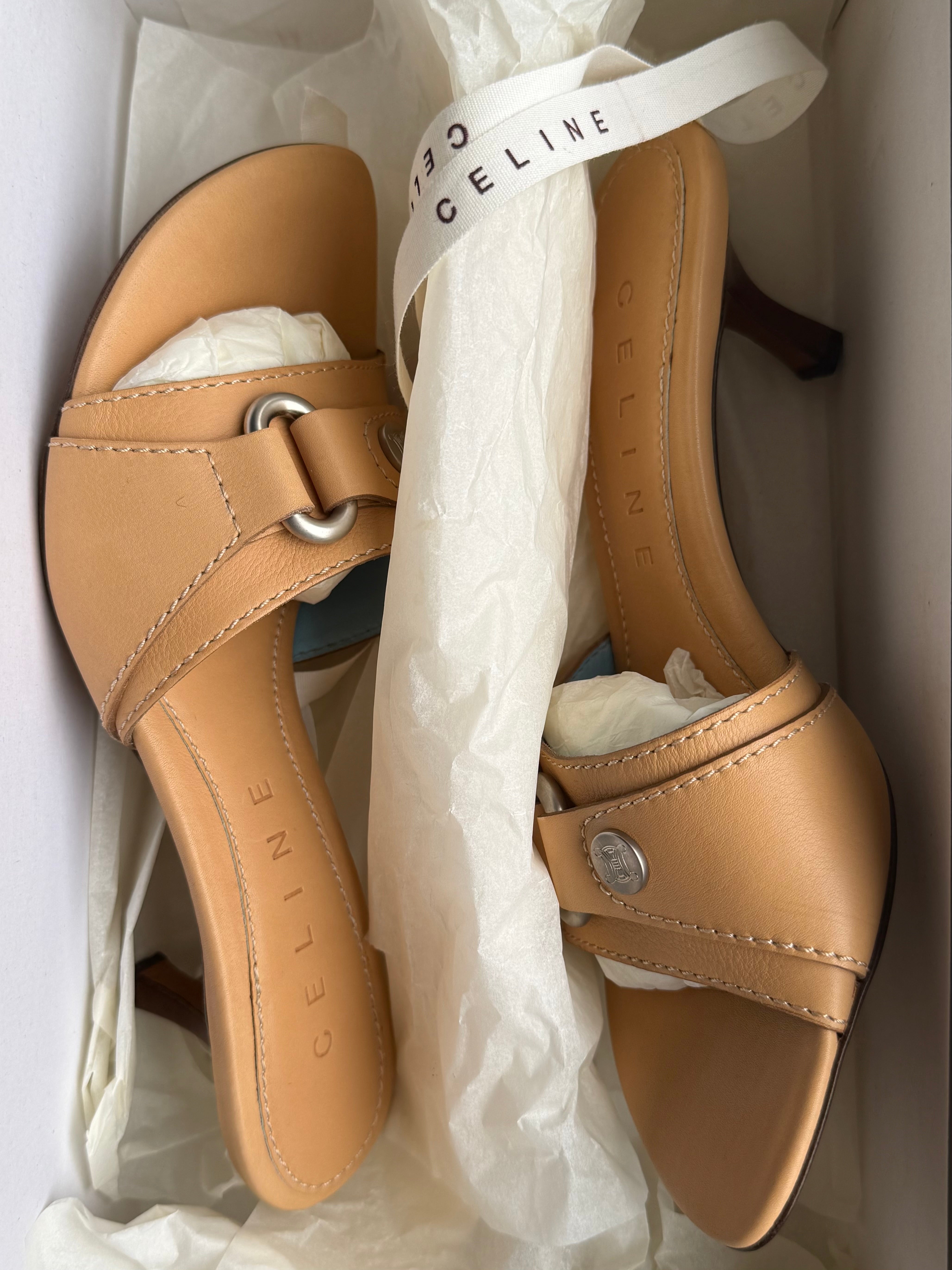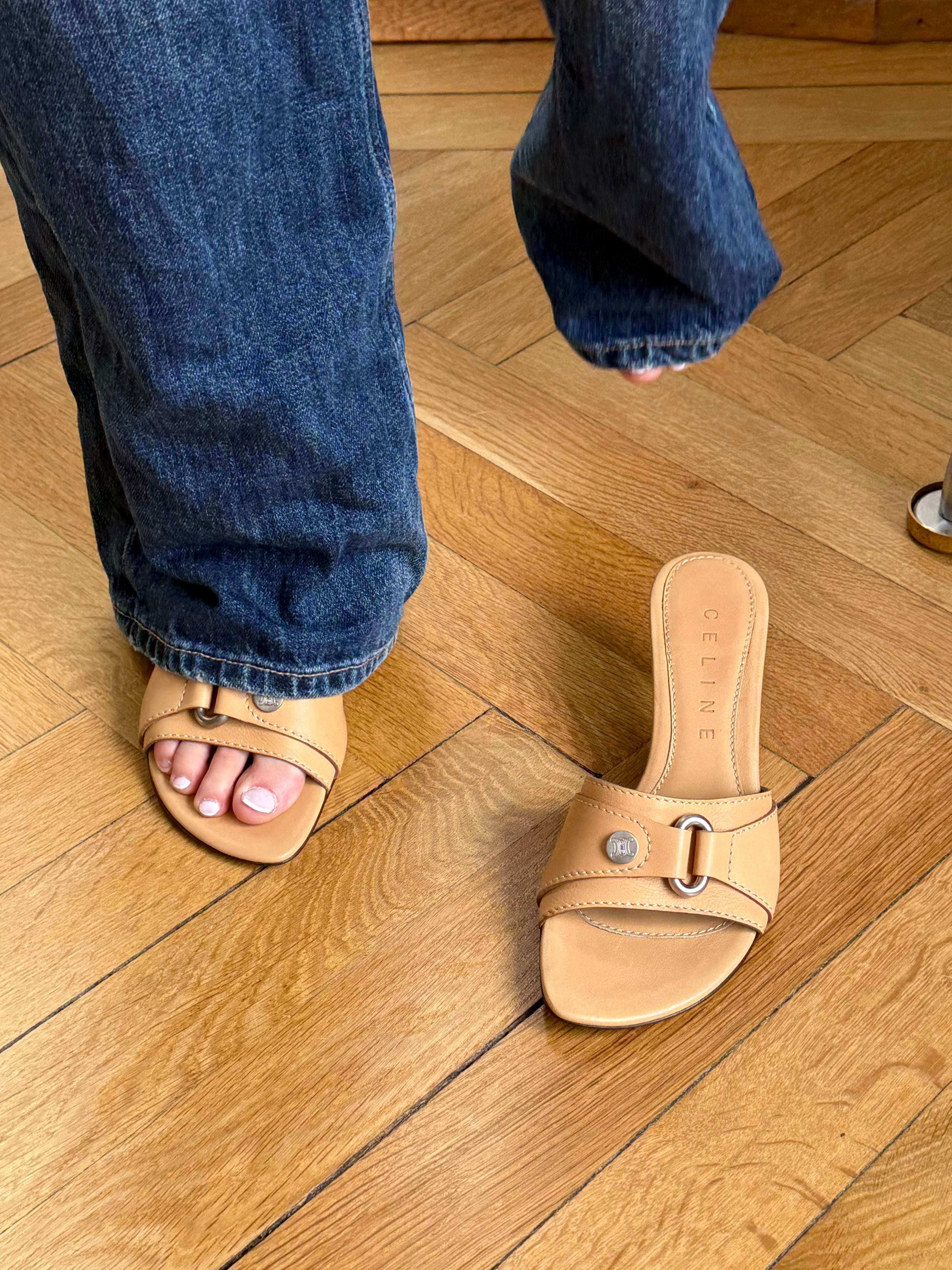Vintage Celine leather mules with silver-tone hardware details and beautiful light blue lining.