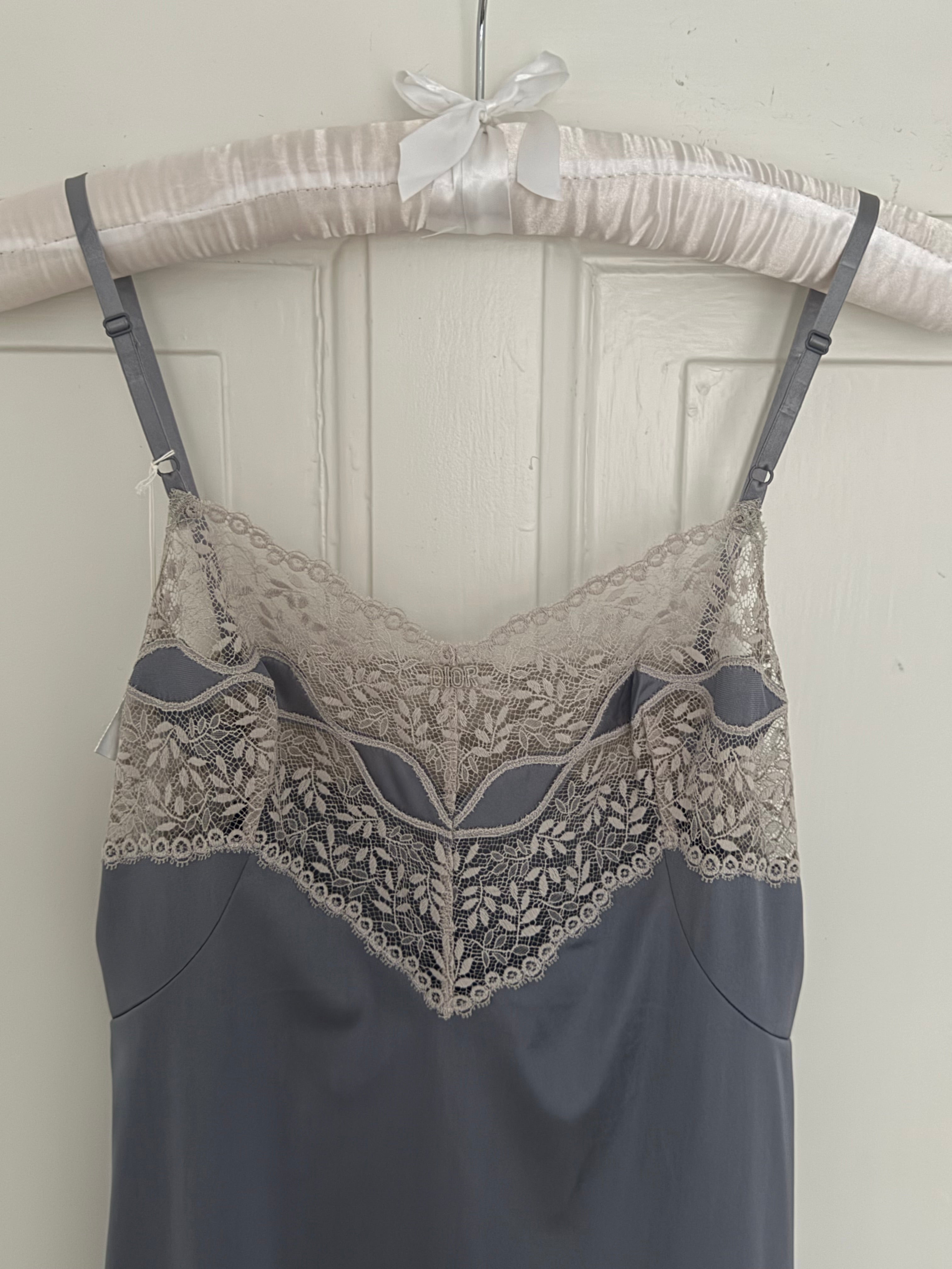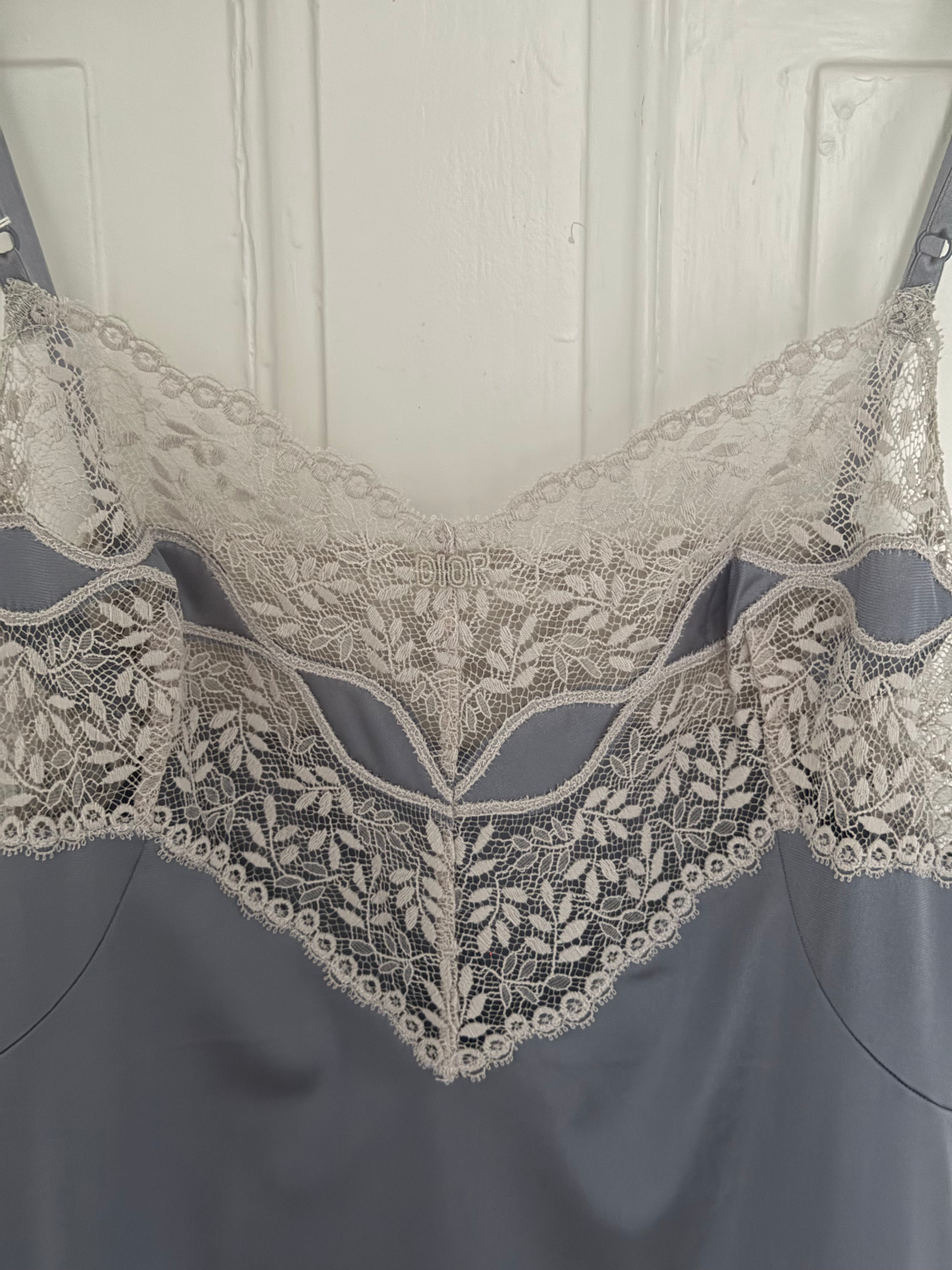 Beautiful vintage Christian Dior lingerie slip dress with delicate lace detailing and adjustable straps.