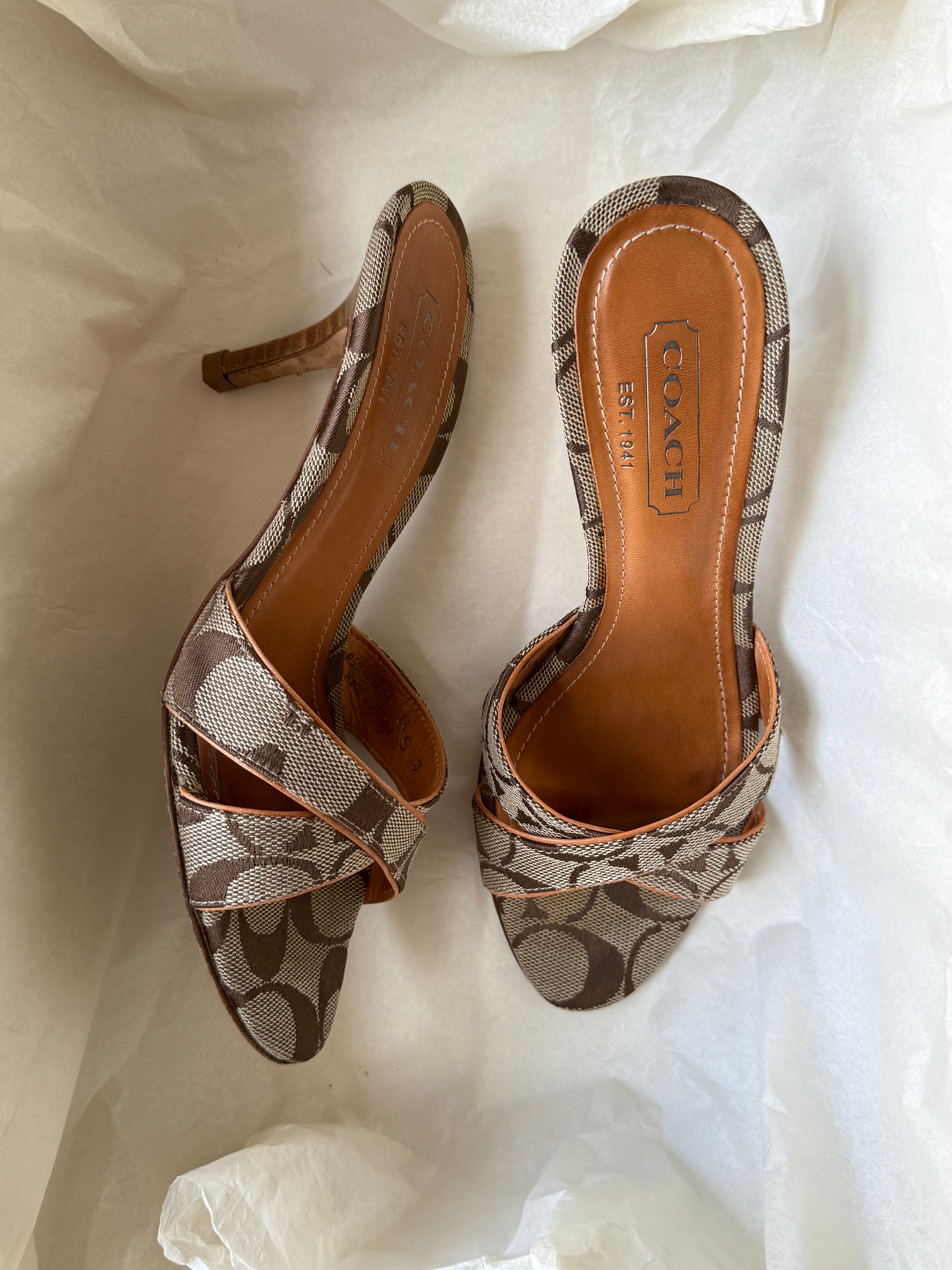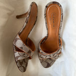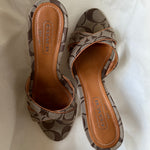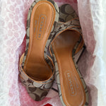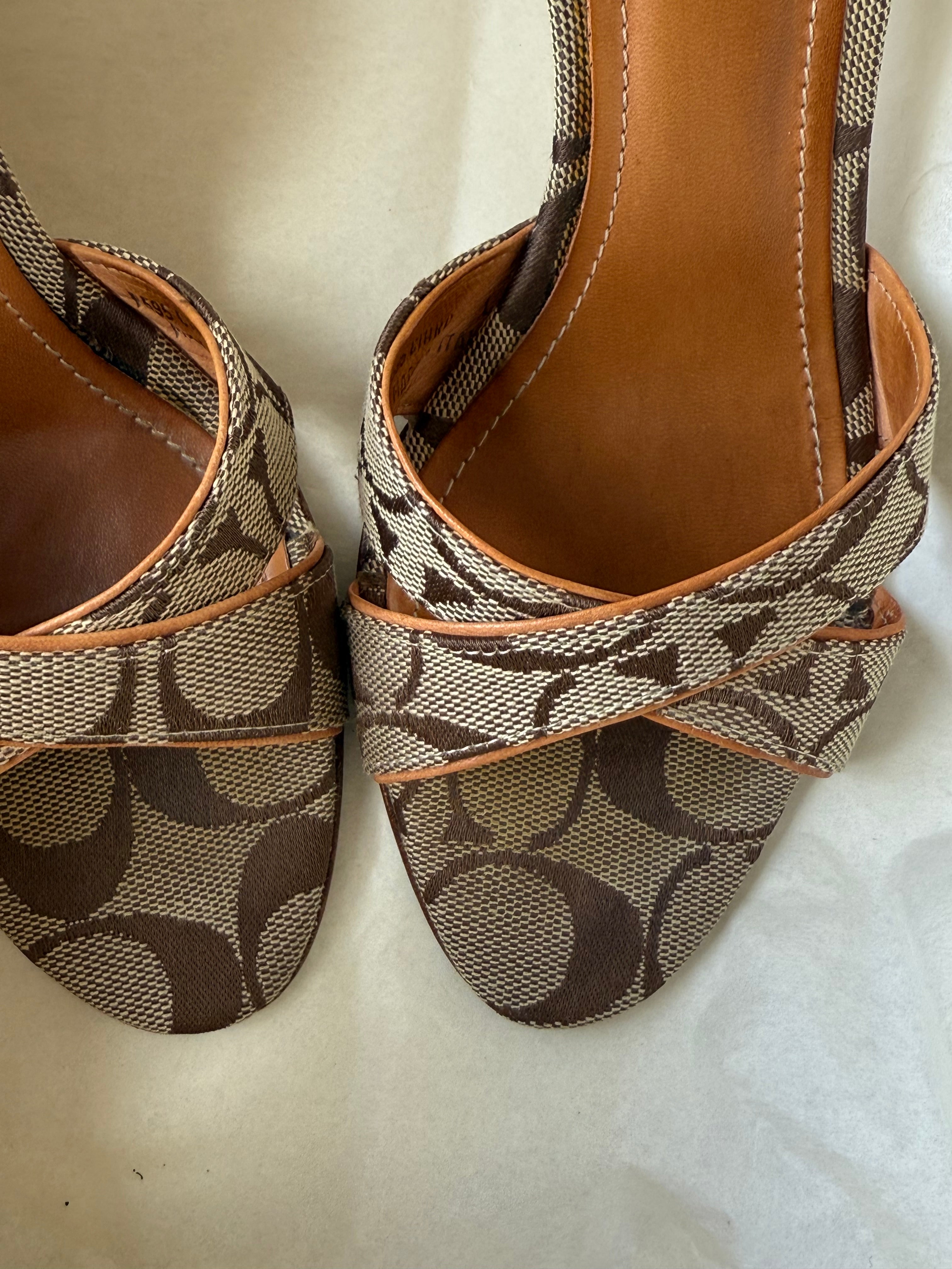 Cute Coach sandals in brown leather with signature canvas