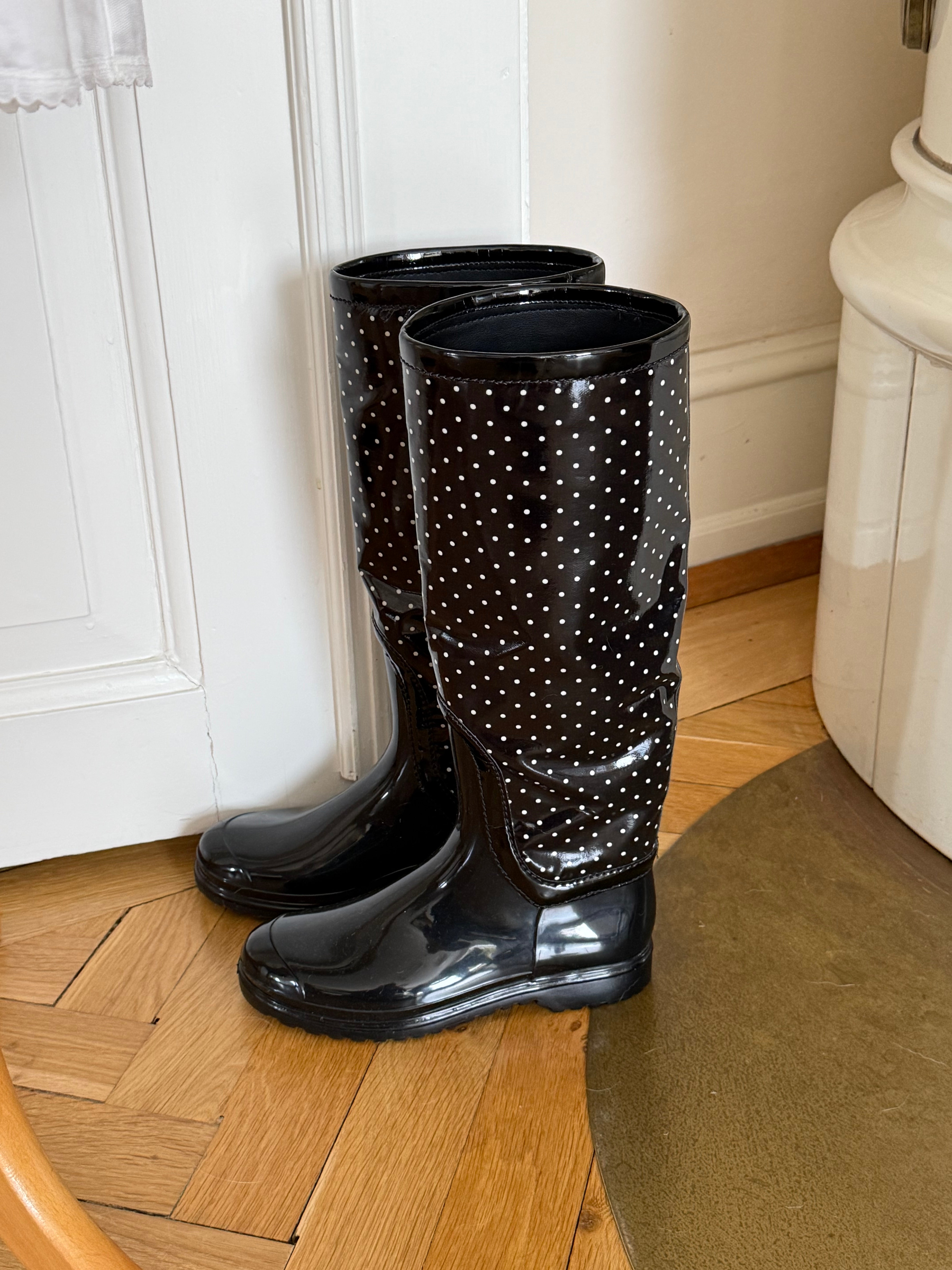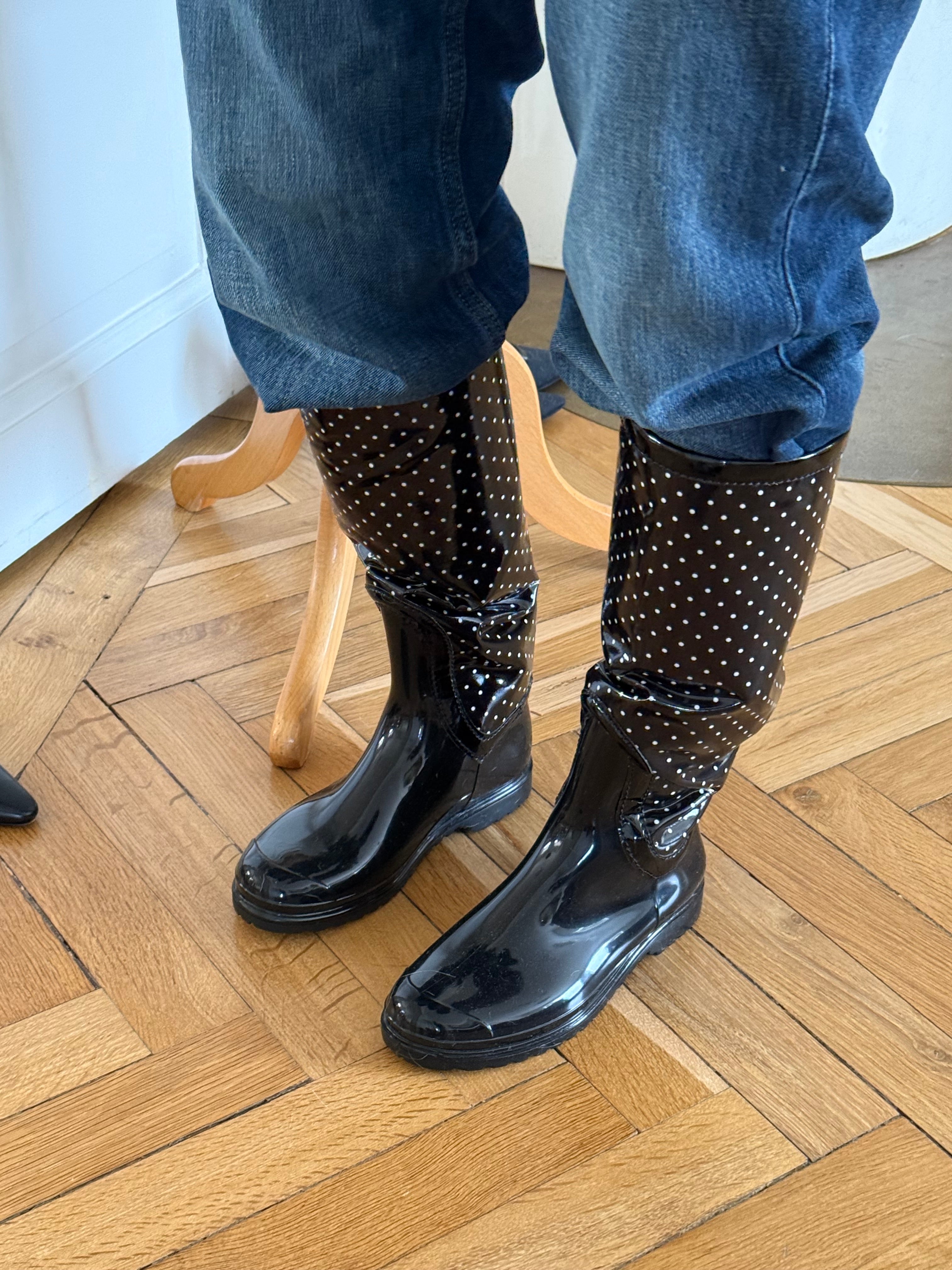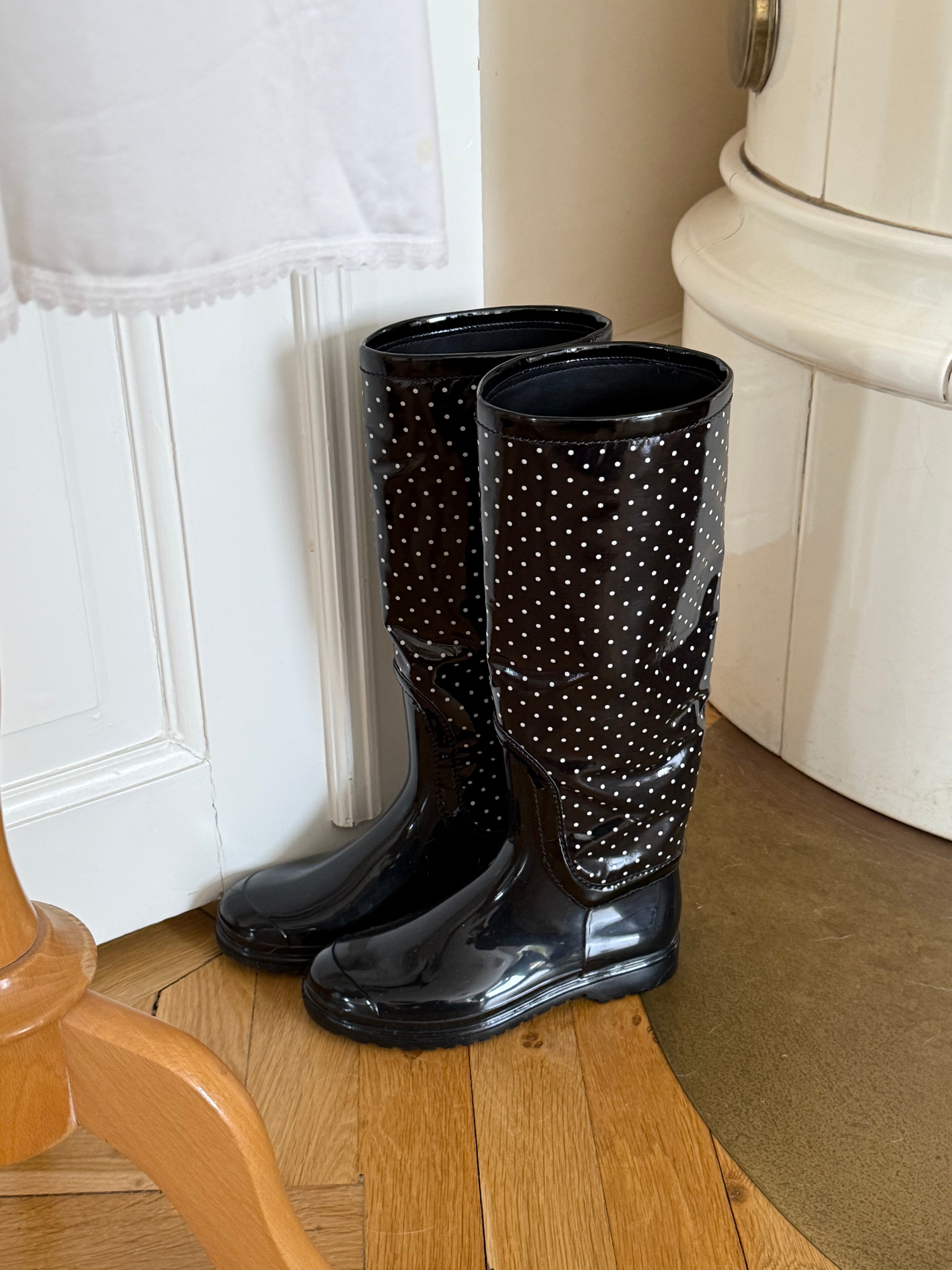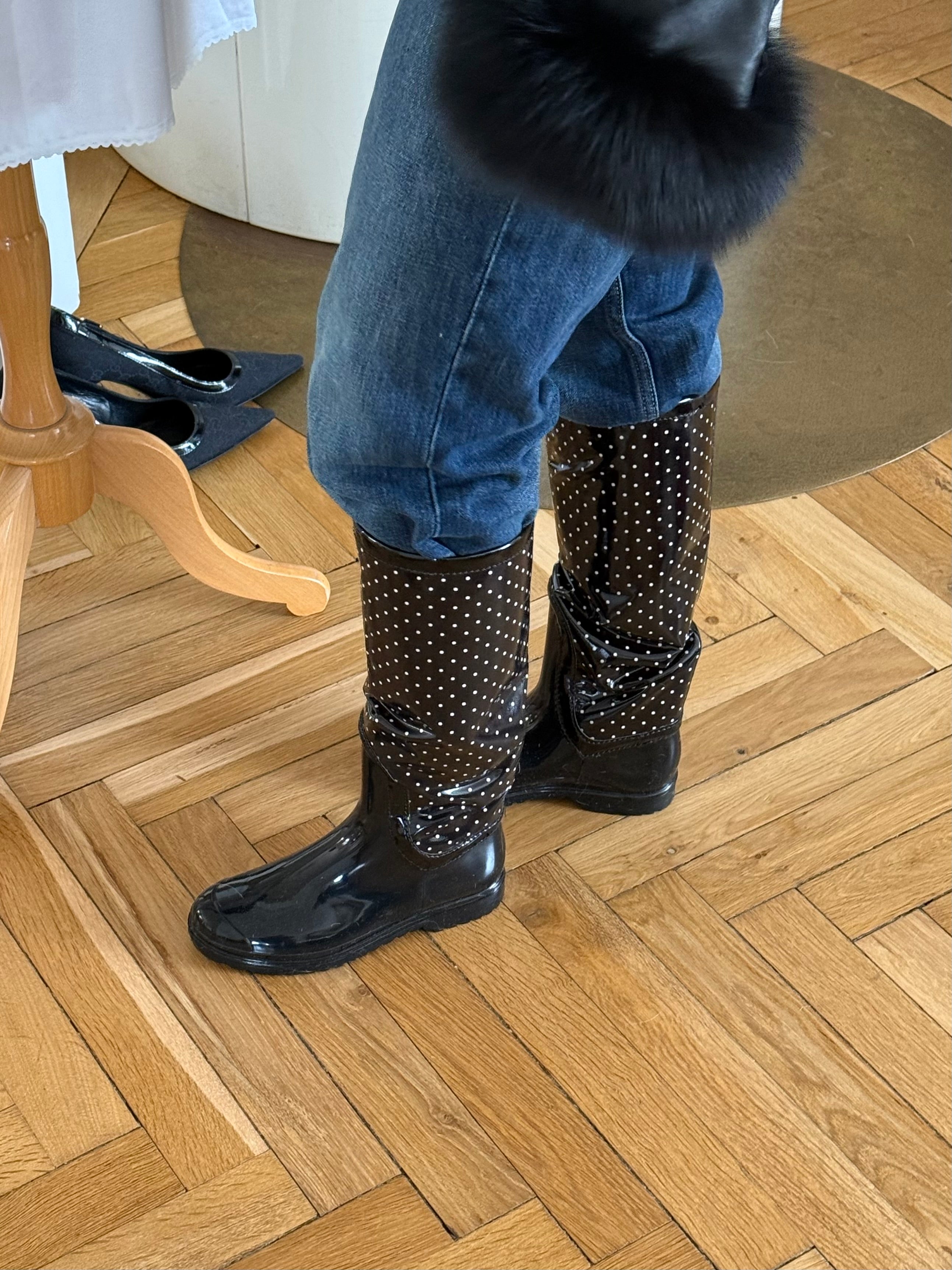 Vintage Dolce & Gabbana polka dot rubber rain boots.