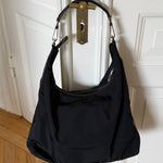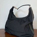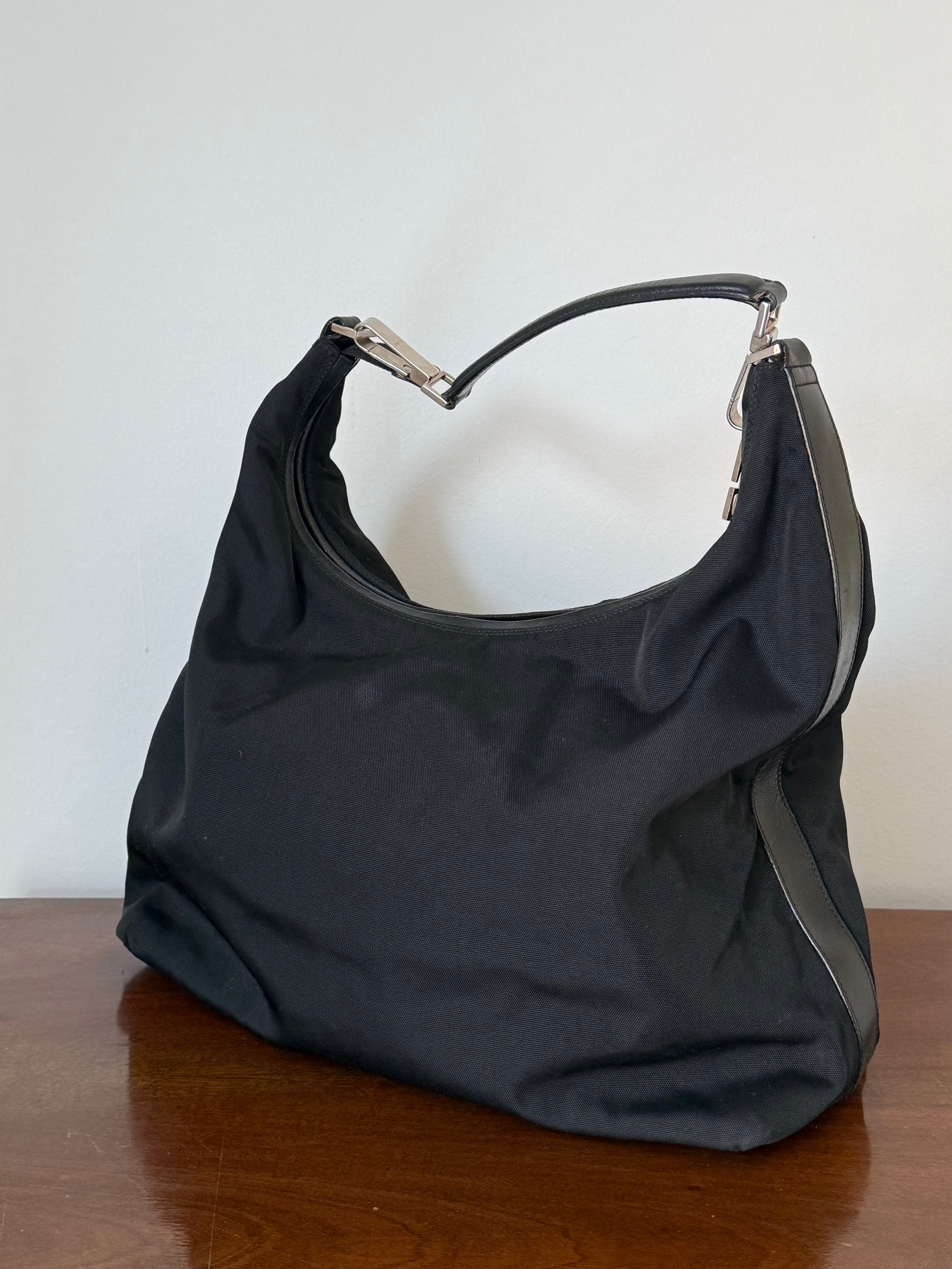 Large vintage Gucci bag in canvas and calf leather with silver-tone hardware.