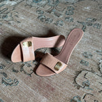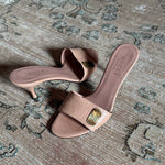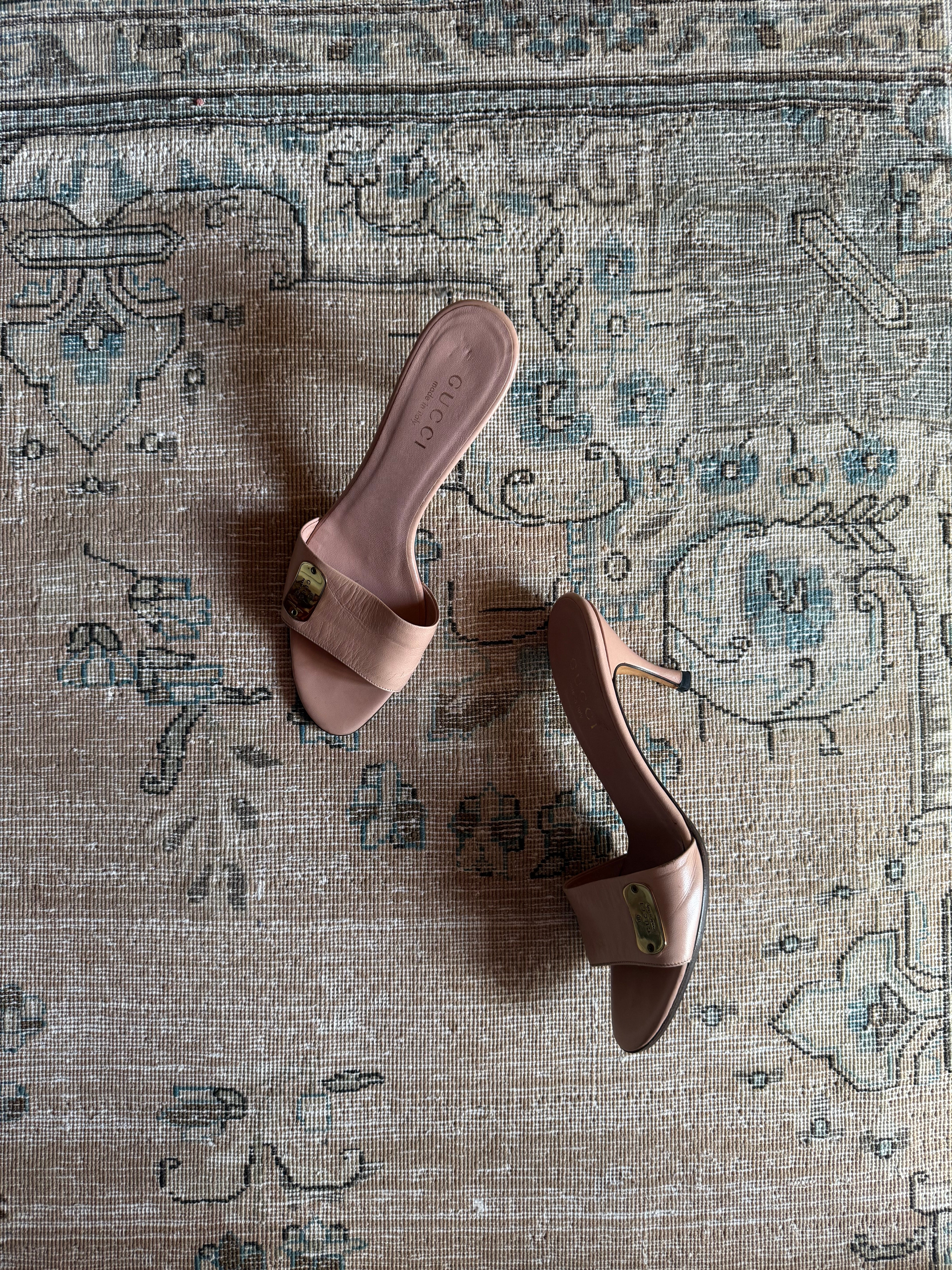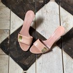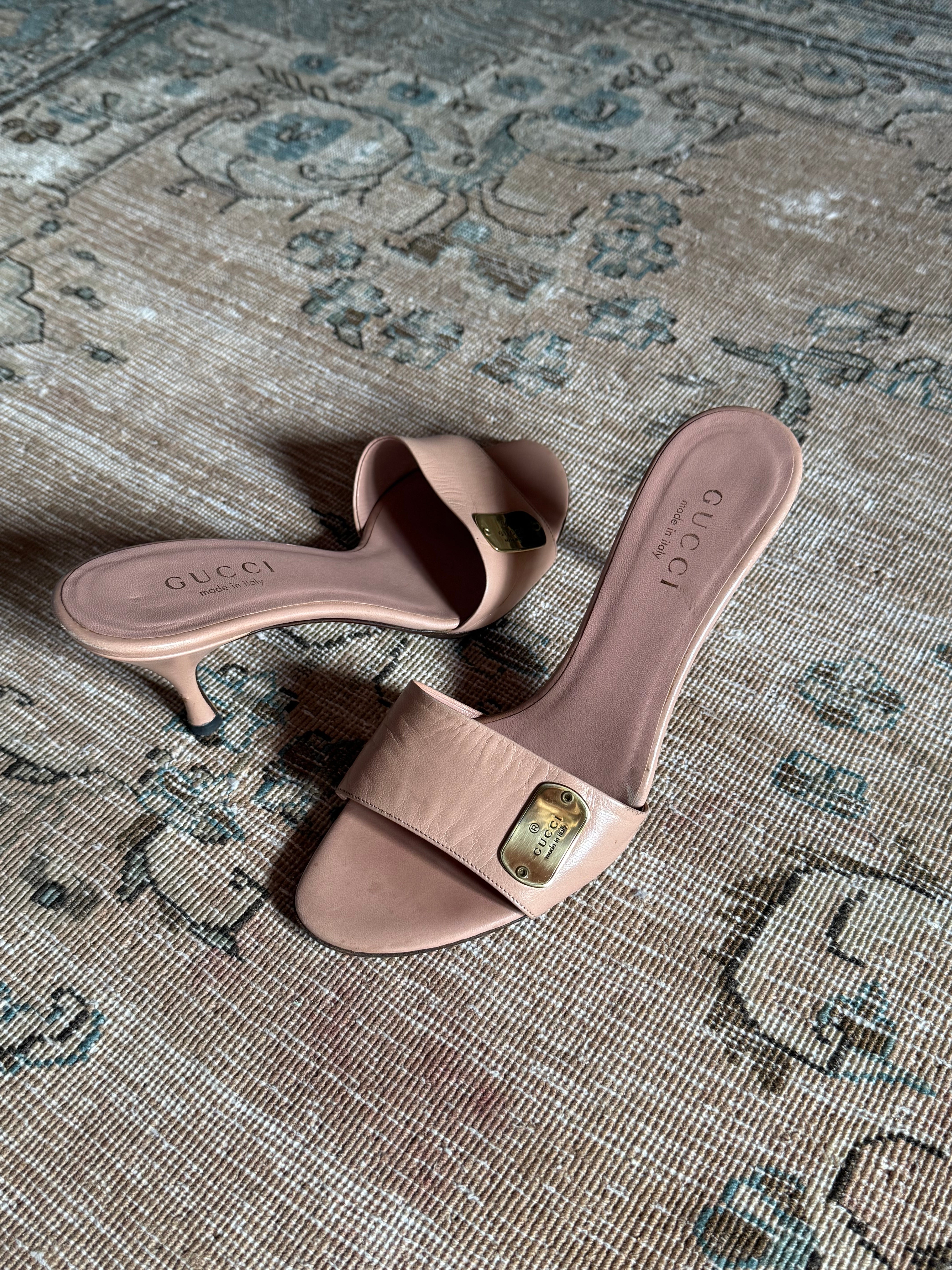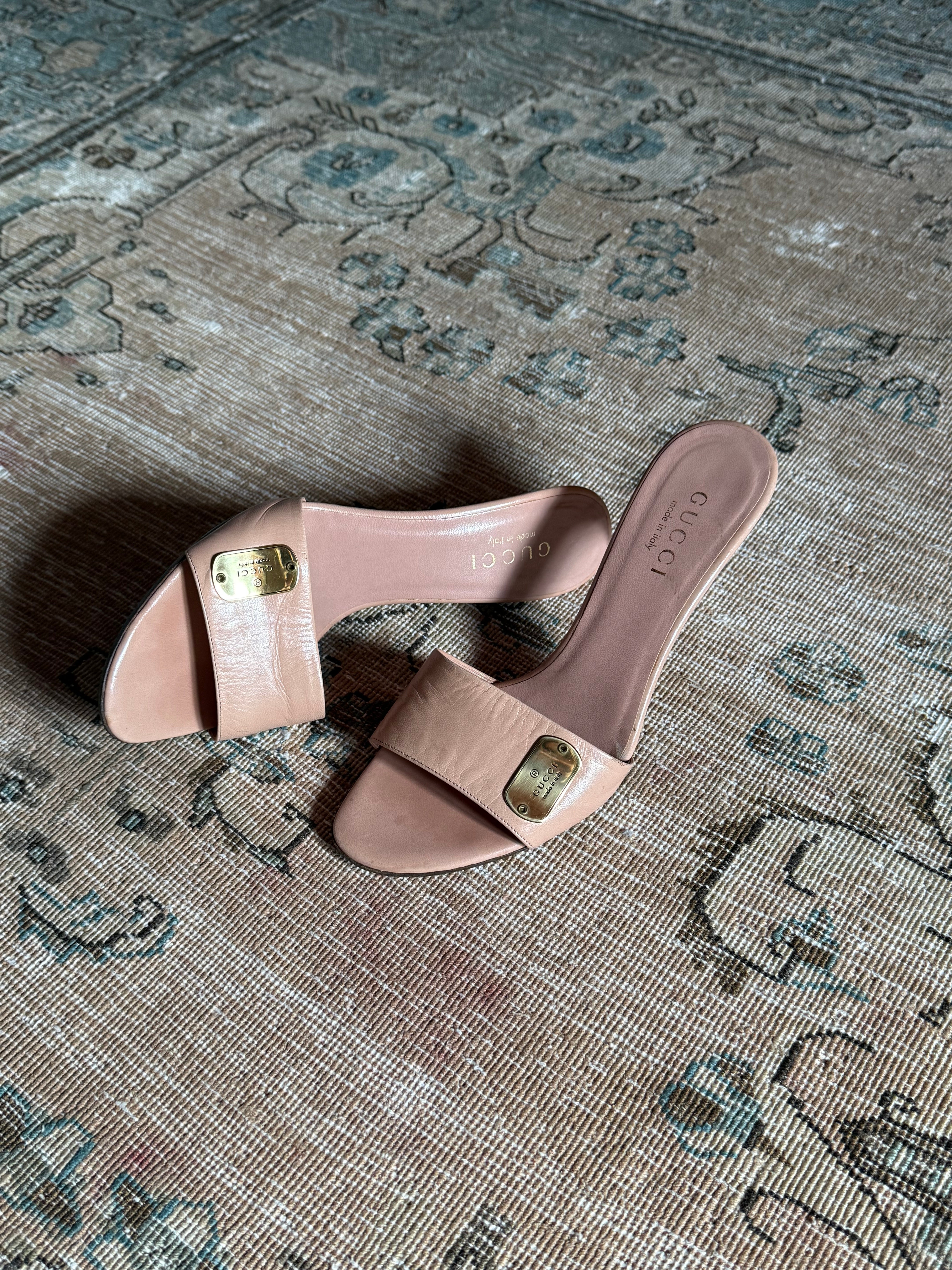 Pink Beige open-toe leather mules in beige/pink by Gucci from early 2000s.