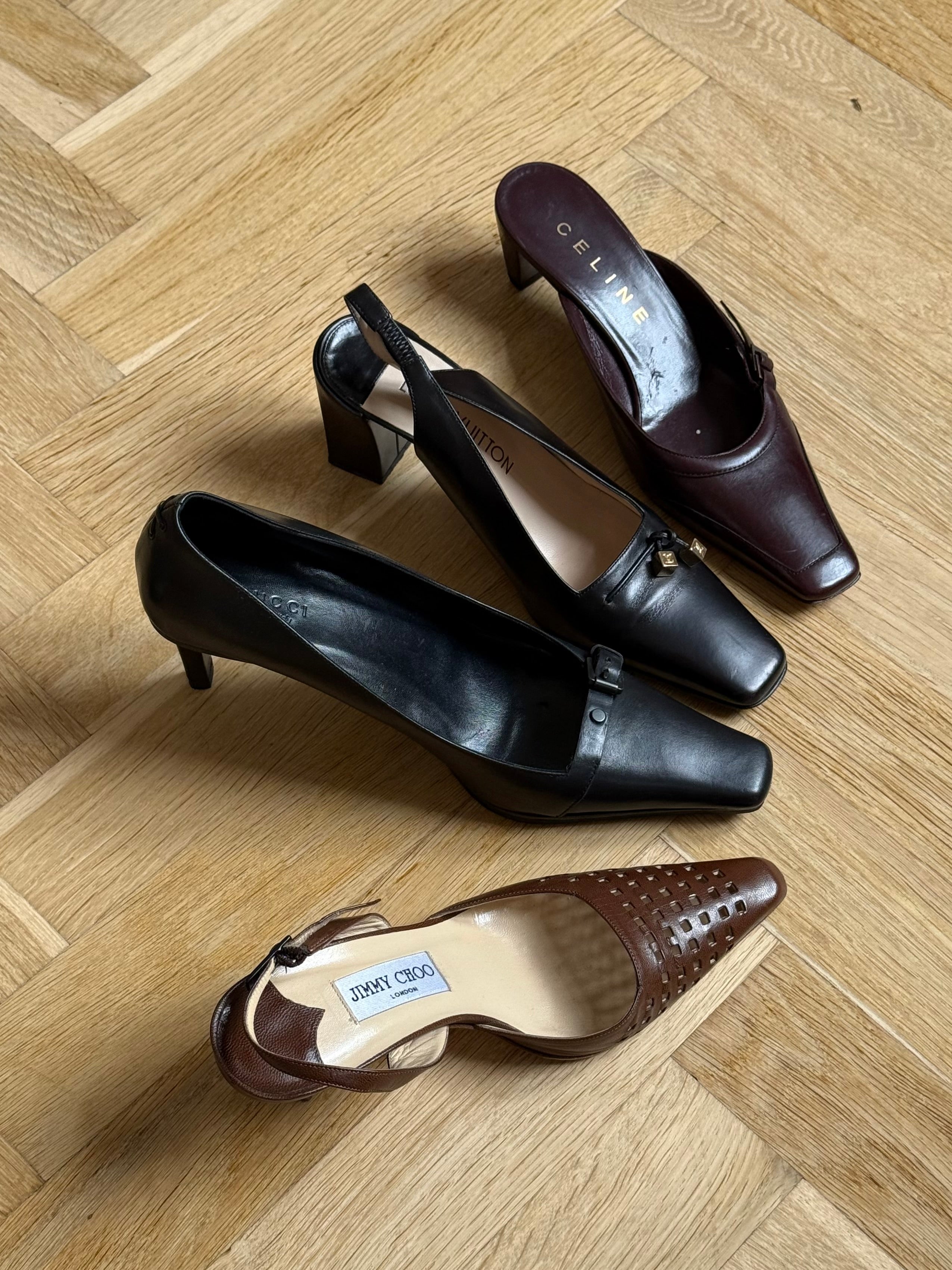 7,5/10 - In good vintage condition showing minor signs of wear. The heels have been resoled.