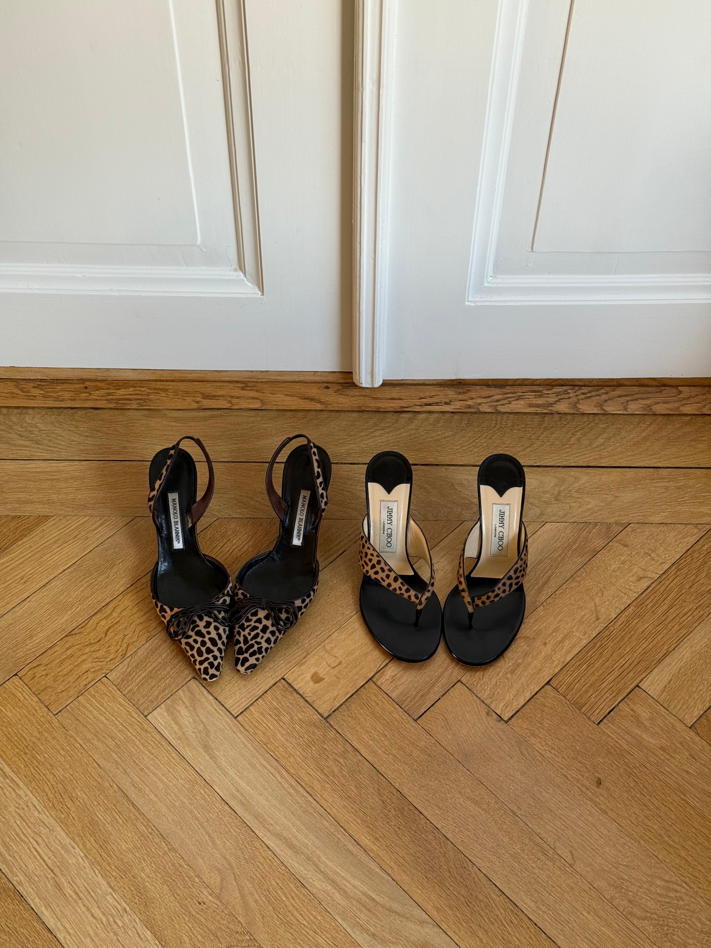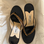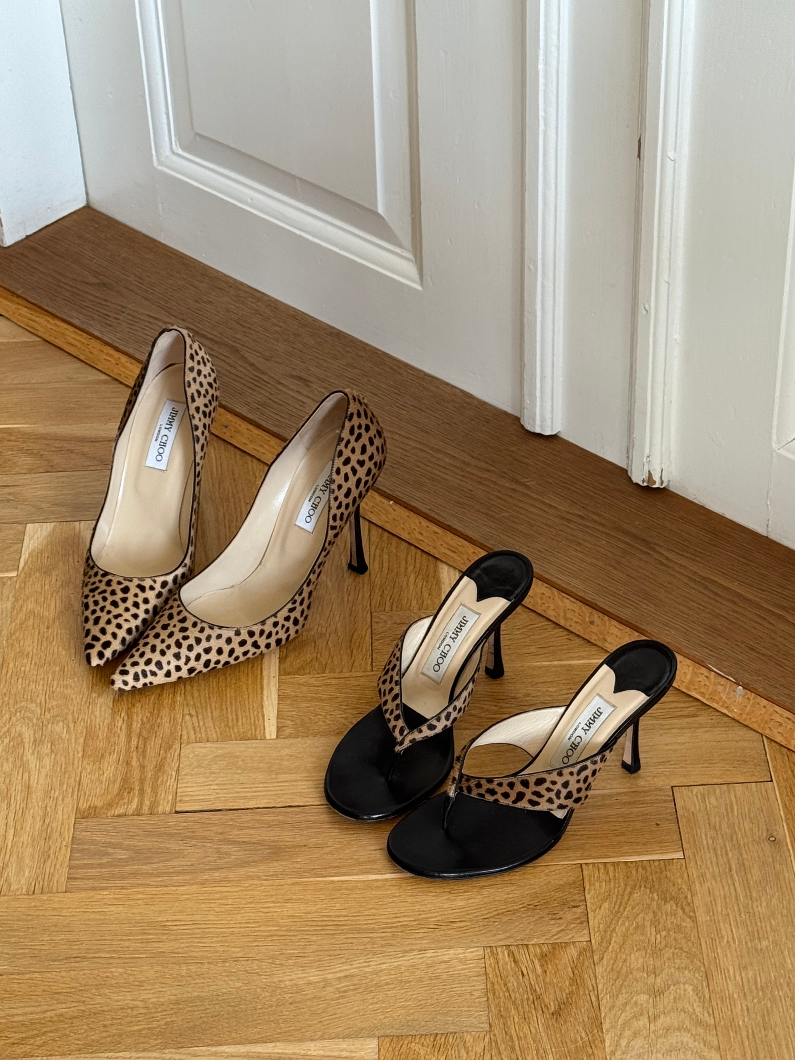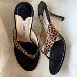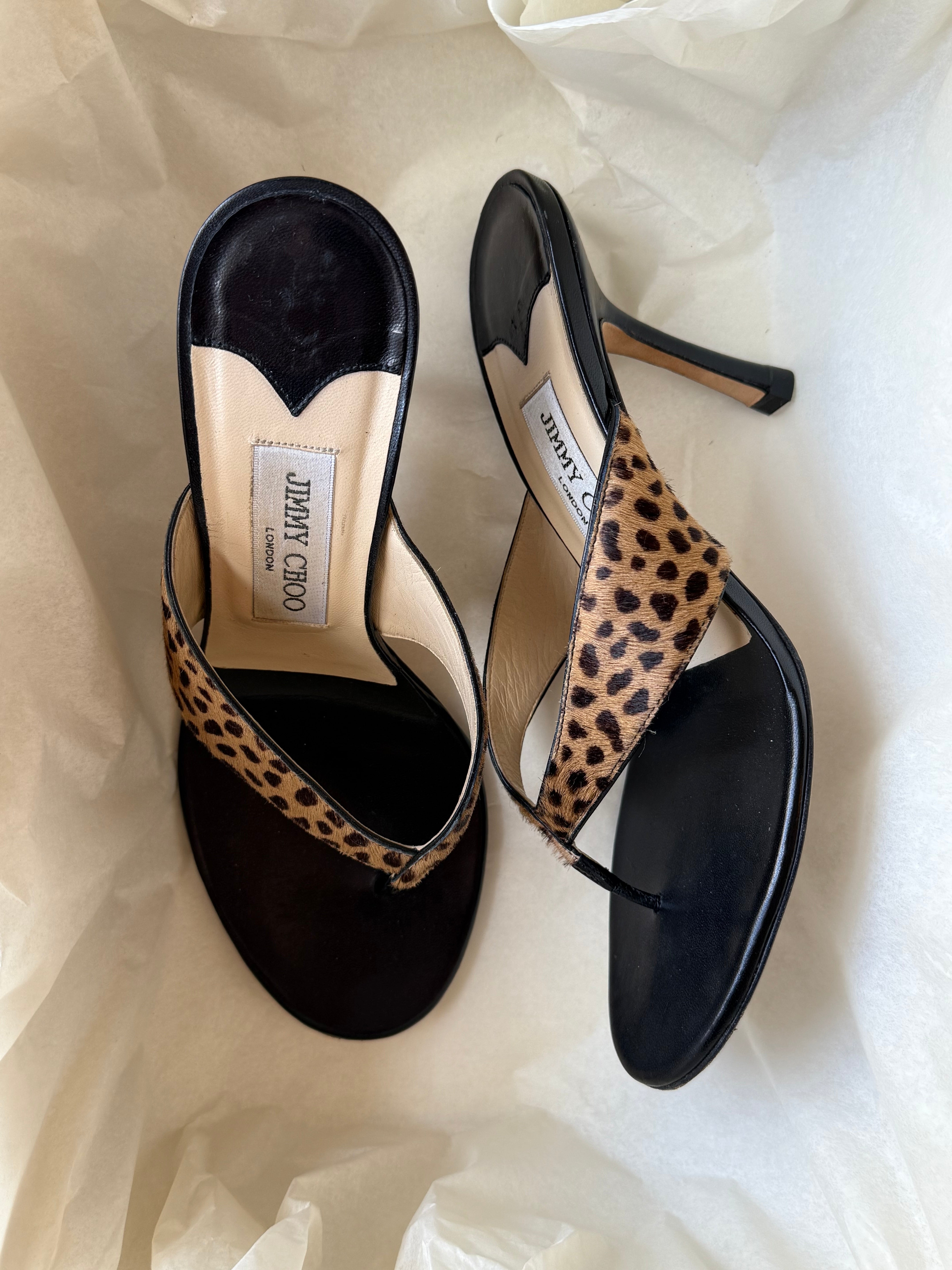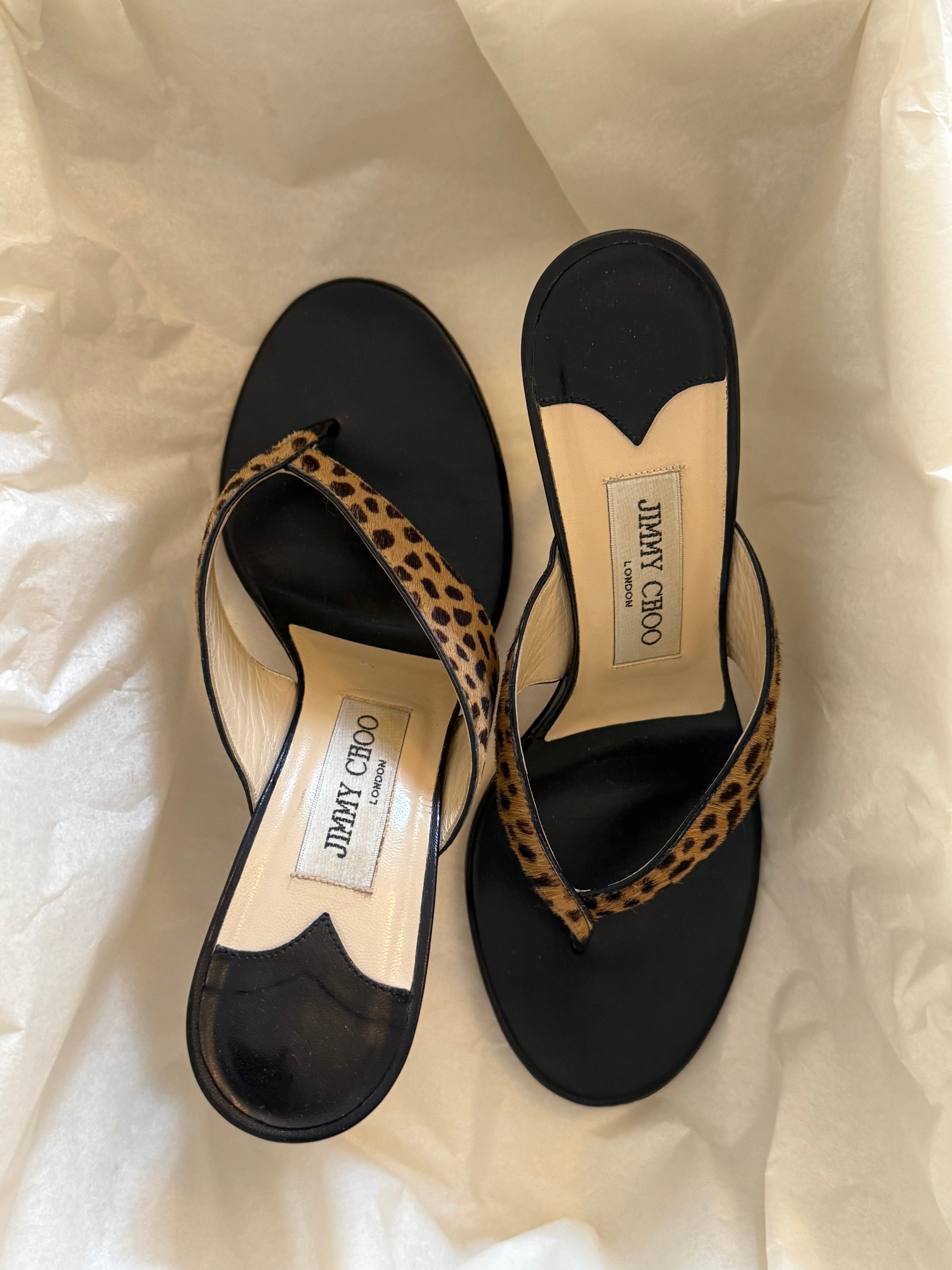 Very rare Jimmy Choo ponyhair leopard thong heels in very good condition.