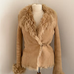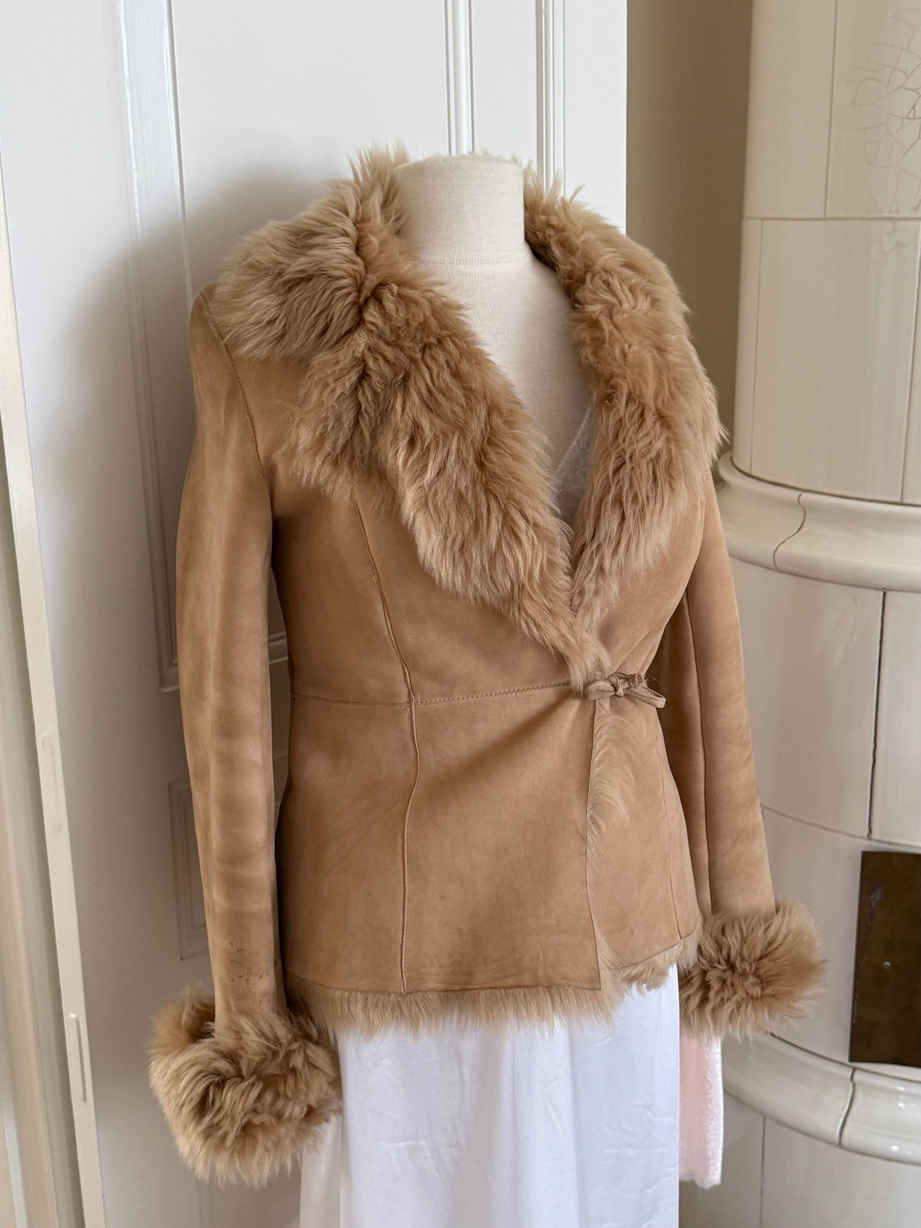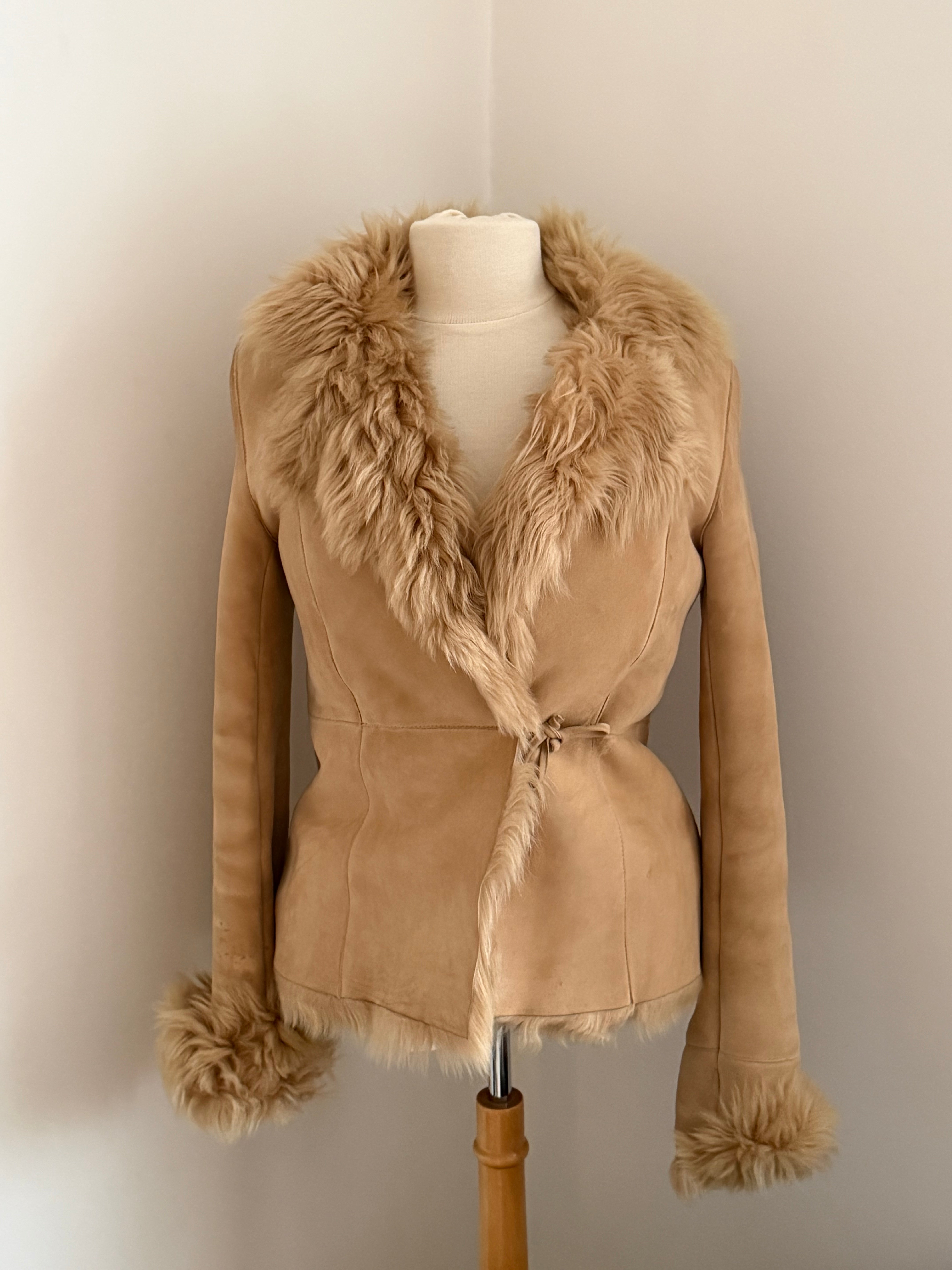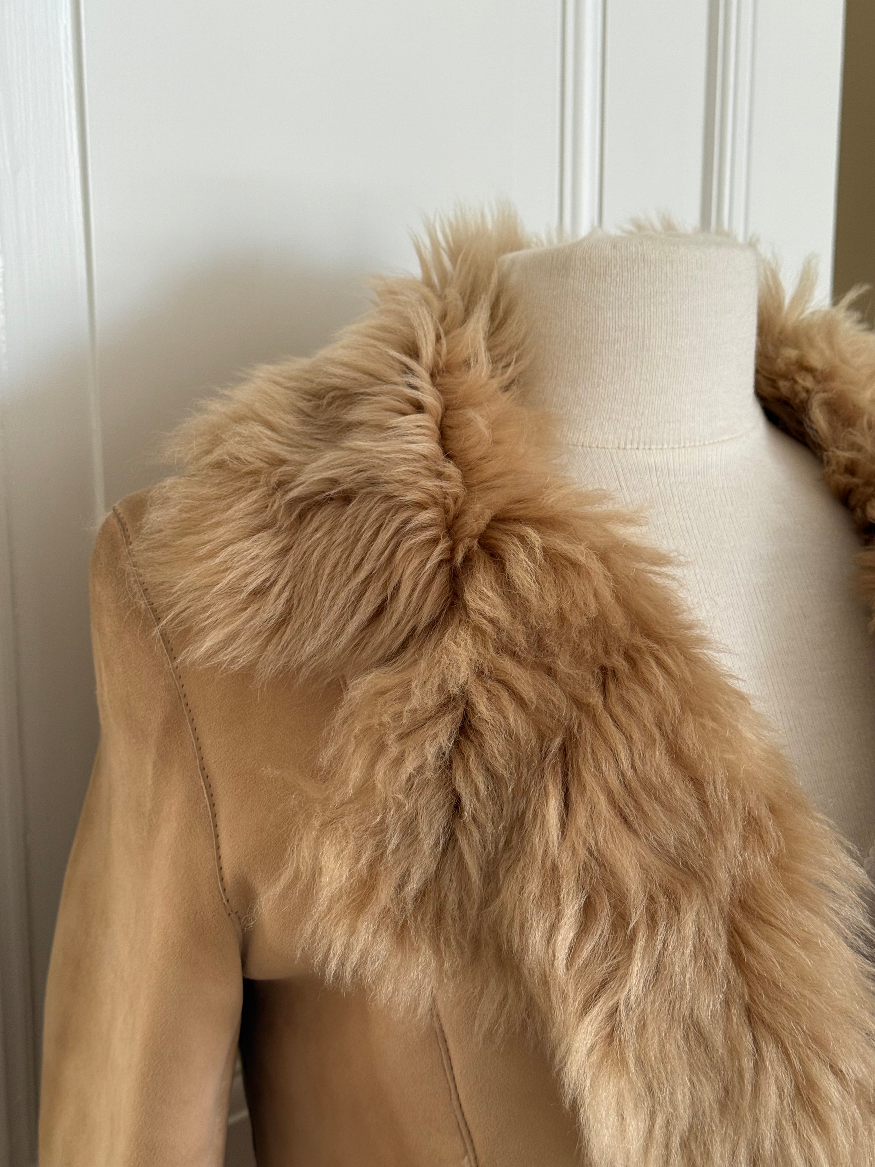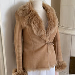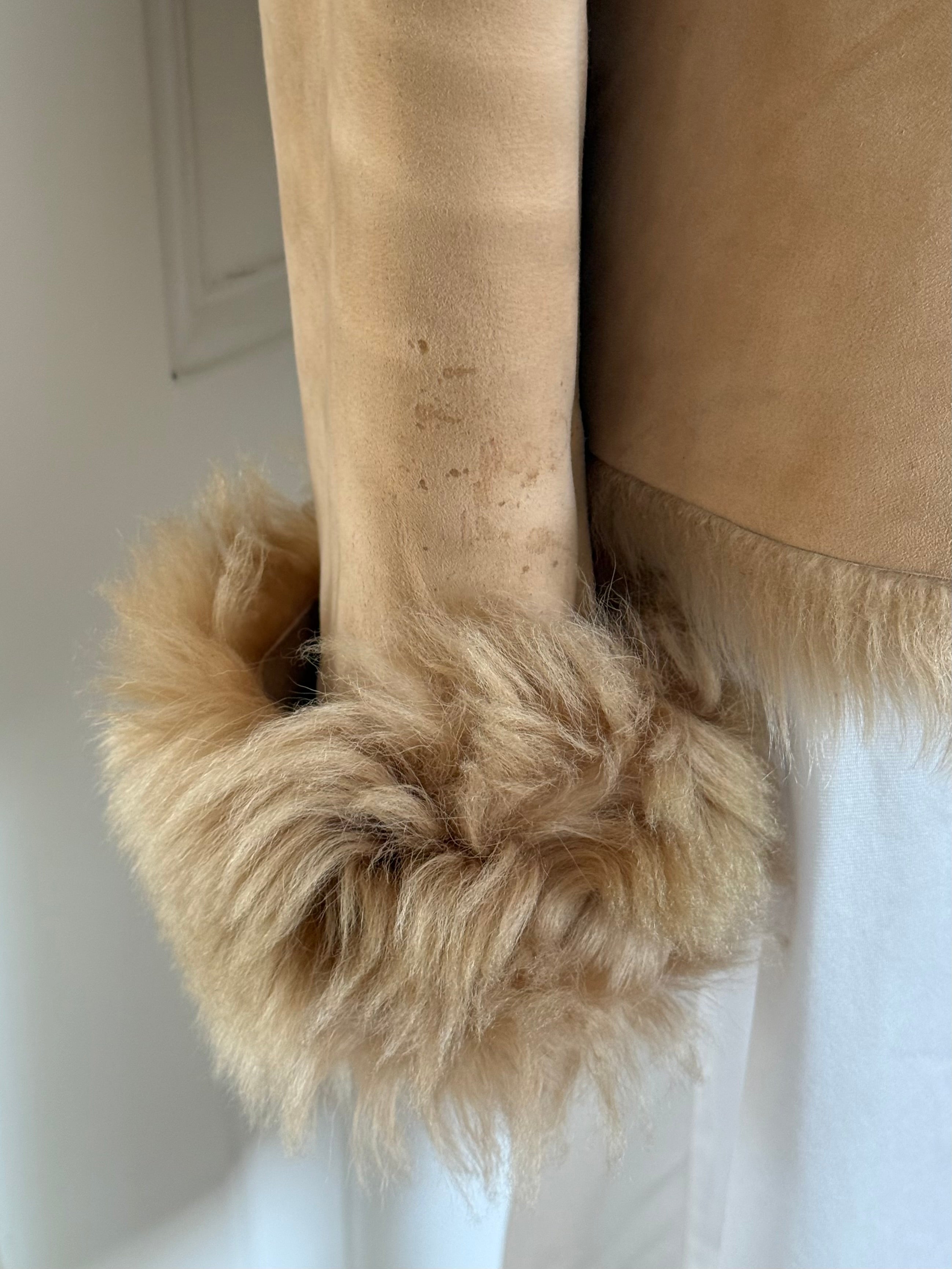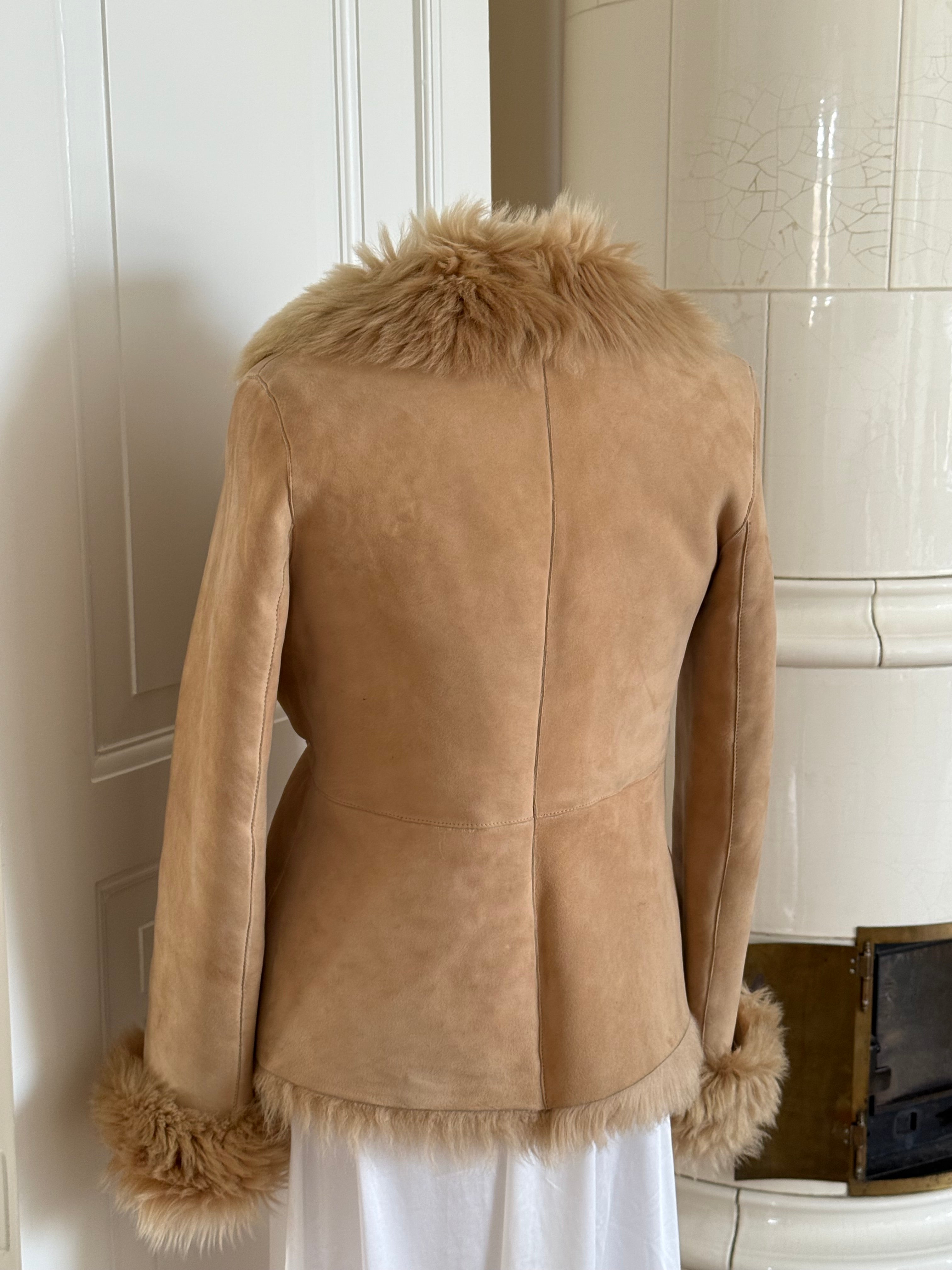 Beautiful vintage jacket form the early 2000’s crafted from soft suede with full plush shearling inside. Designed with a fur-trimmed collar and cuffs.