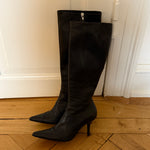 Stunning vintage Loewe boots in black leather with silver hardware.