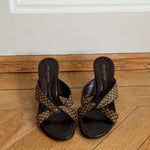 Beautiful vintage Louis Vuitton mules in pony hair checkered pattern.