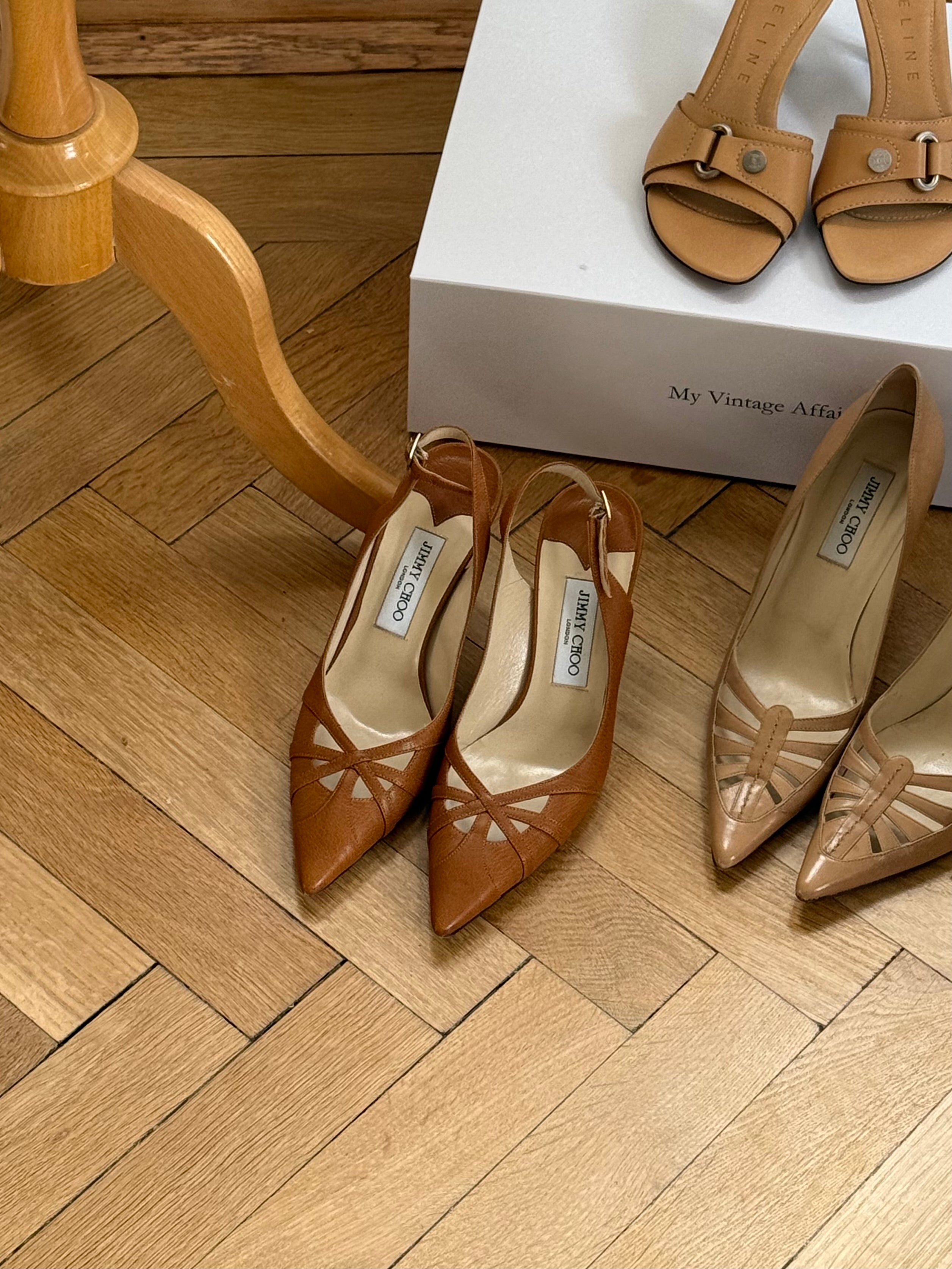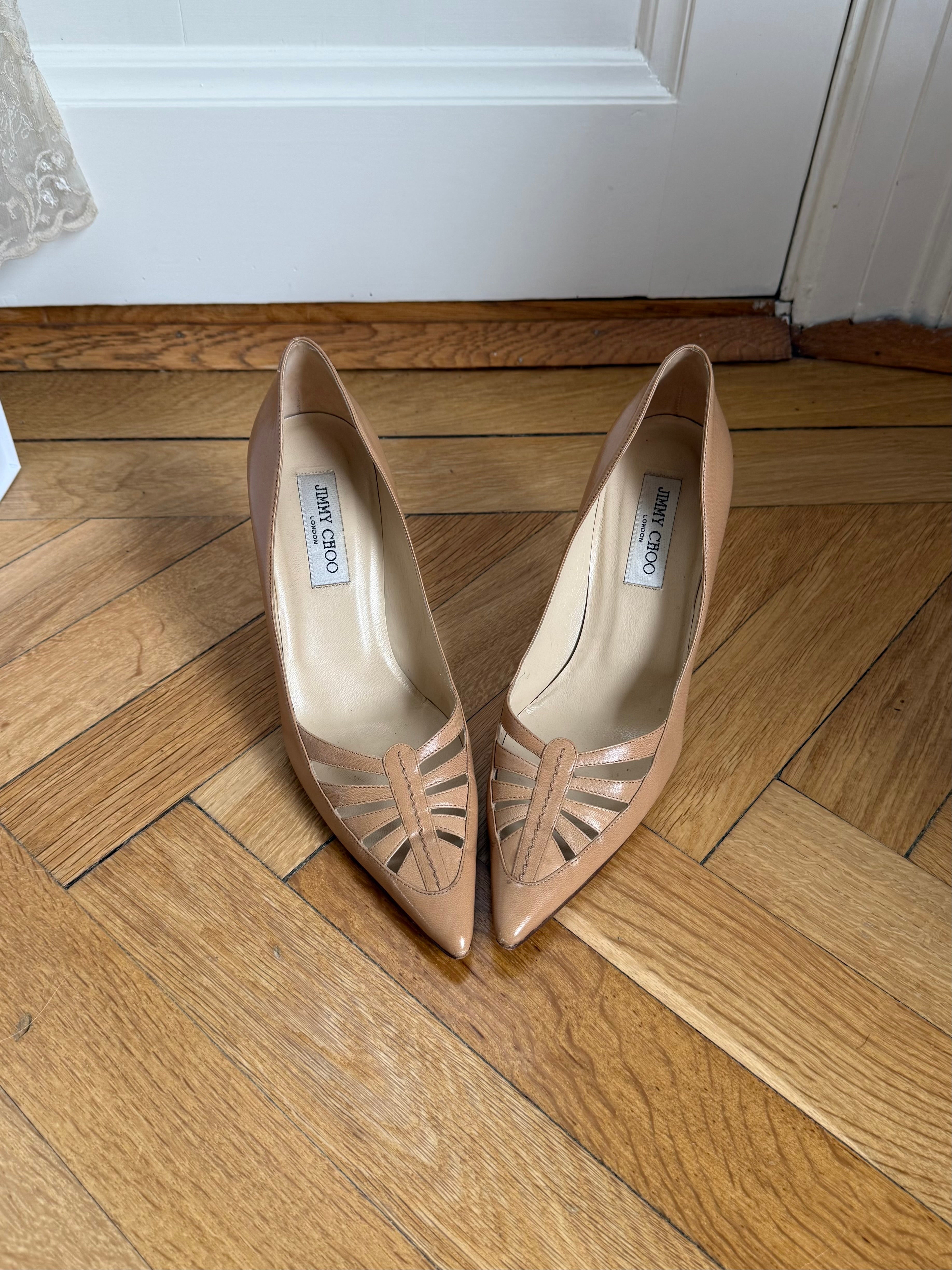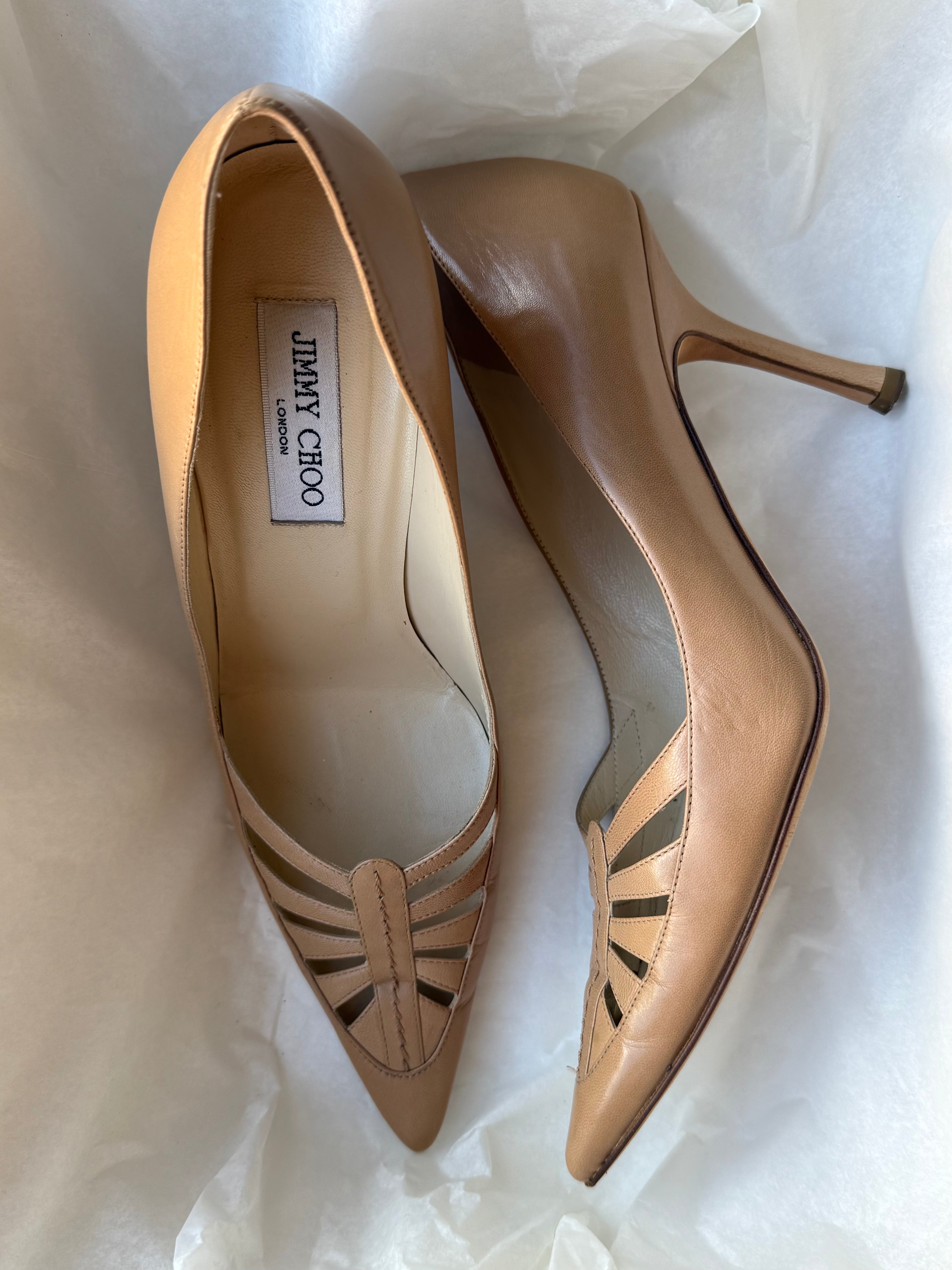 Vintage Jimmy Choo leather pumps with cut-out details.