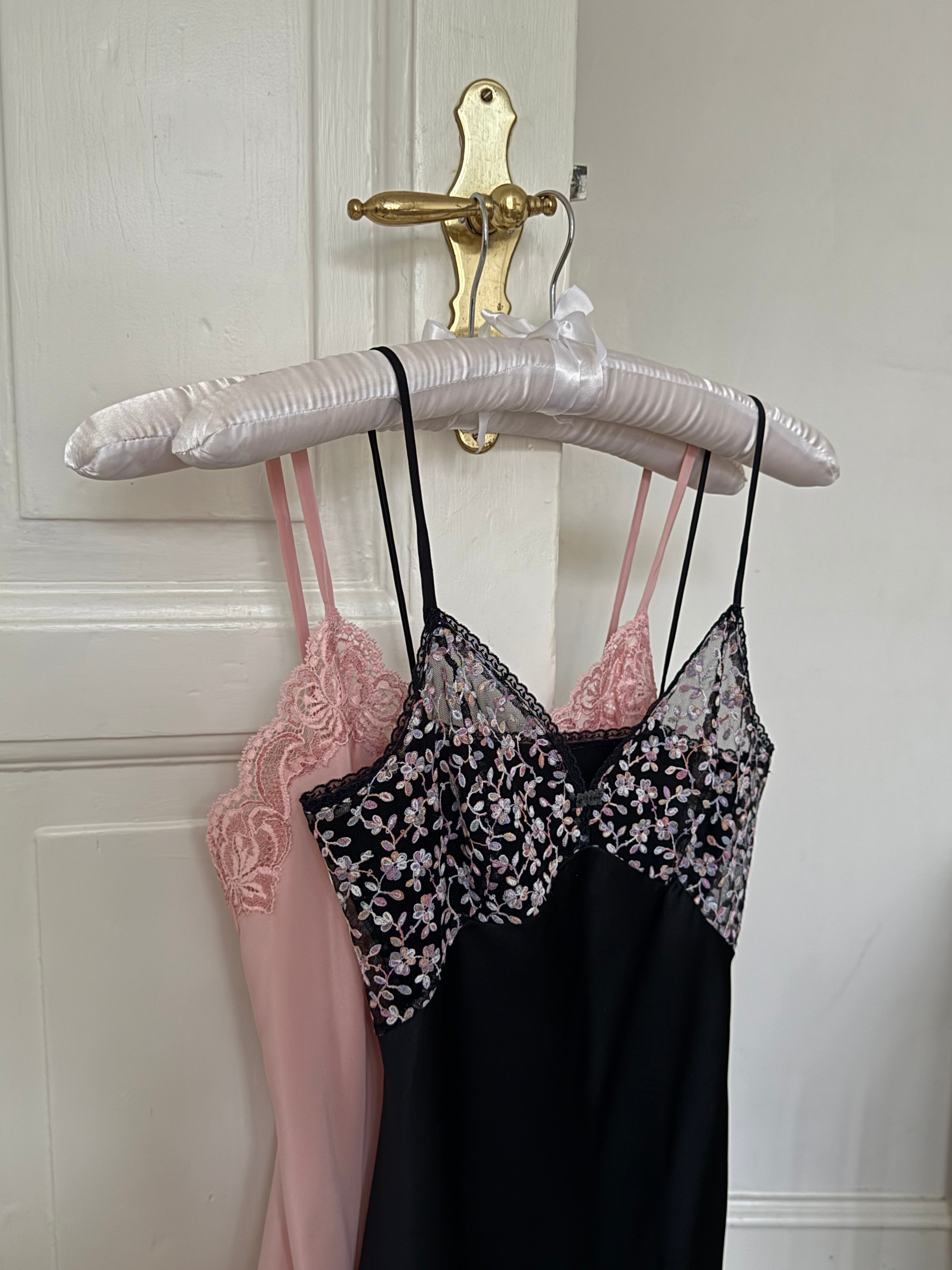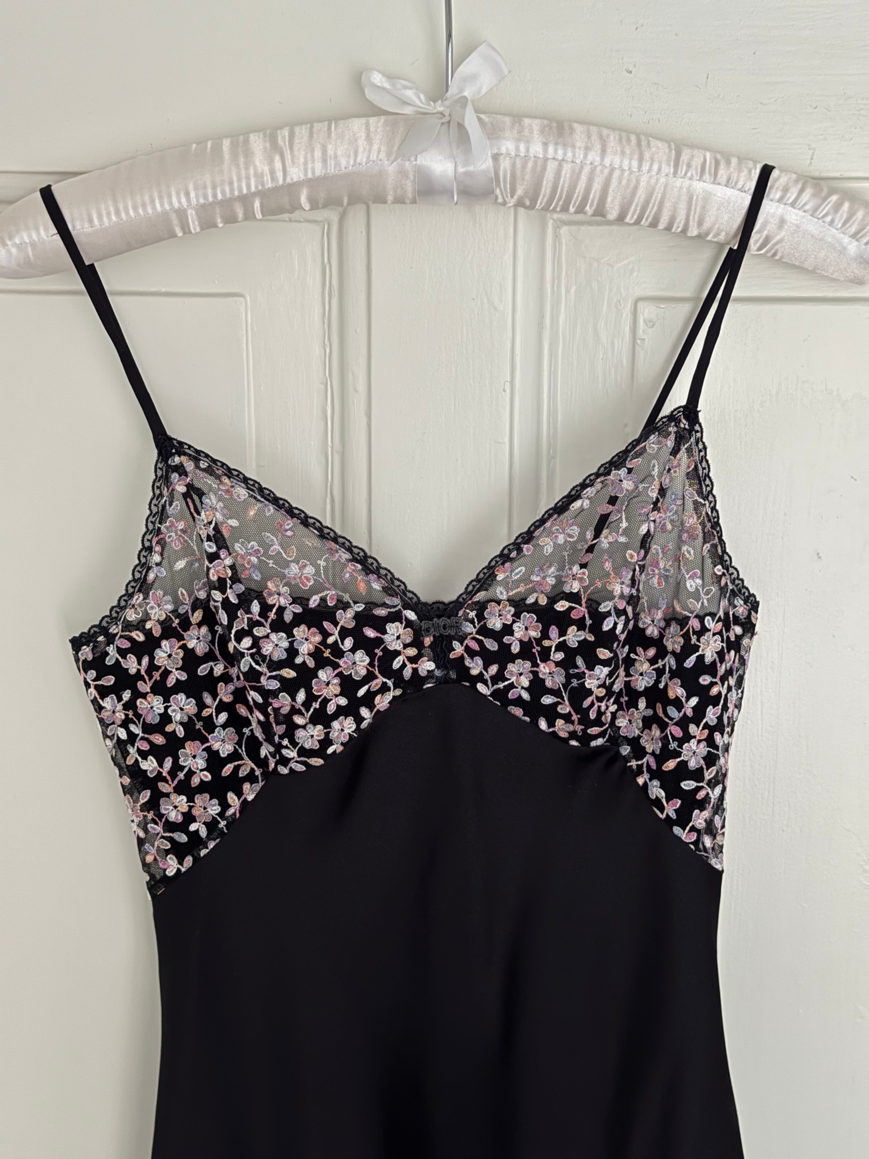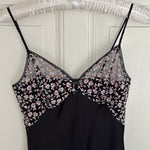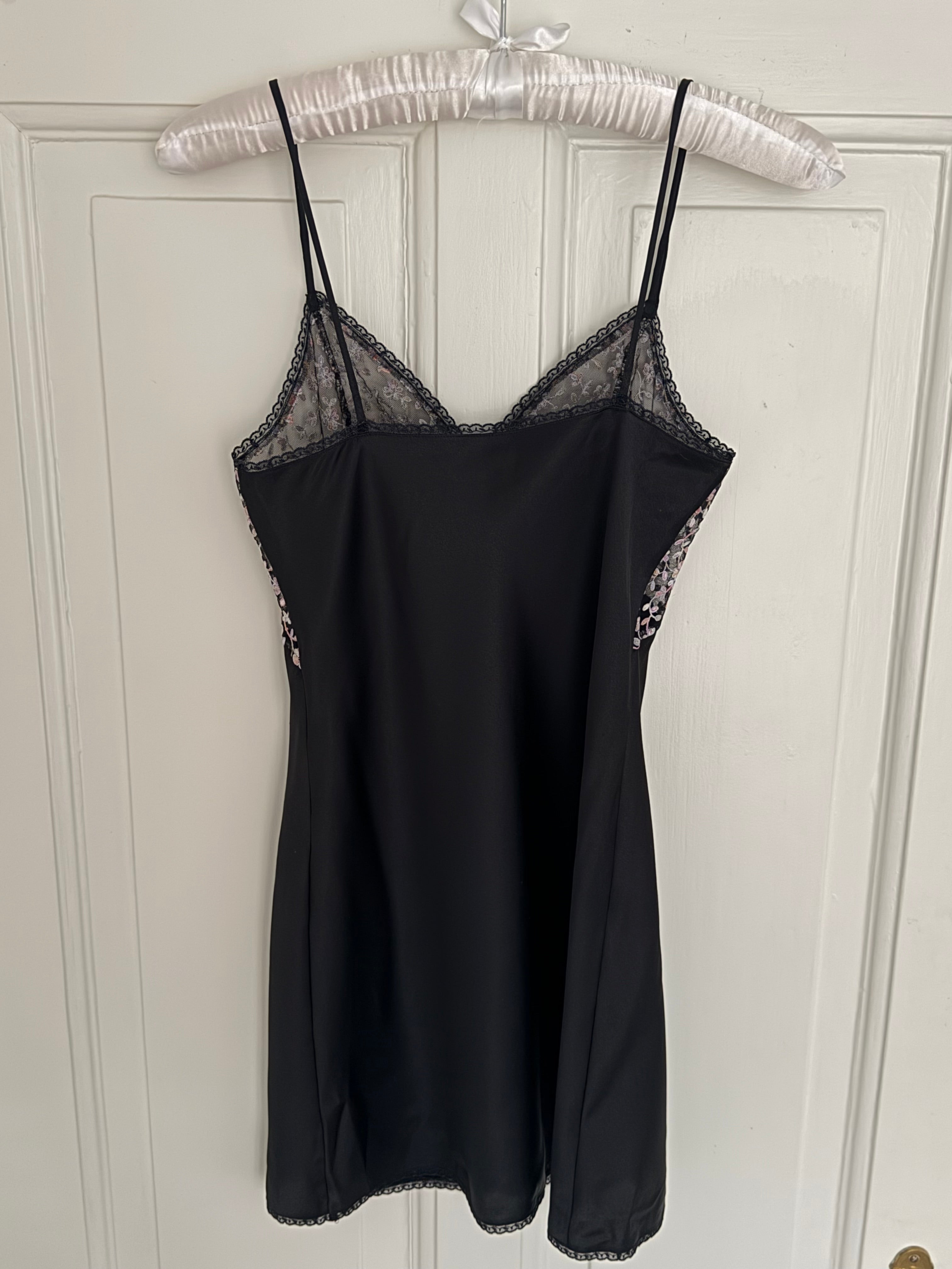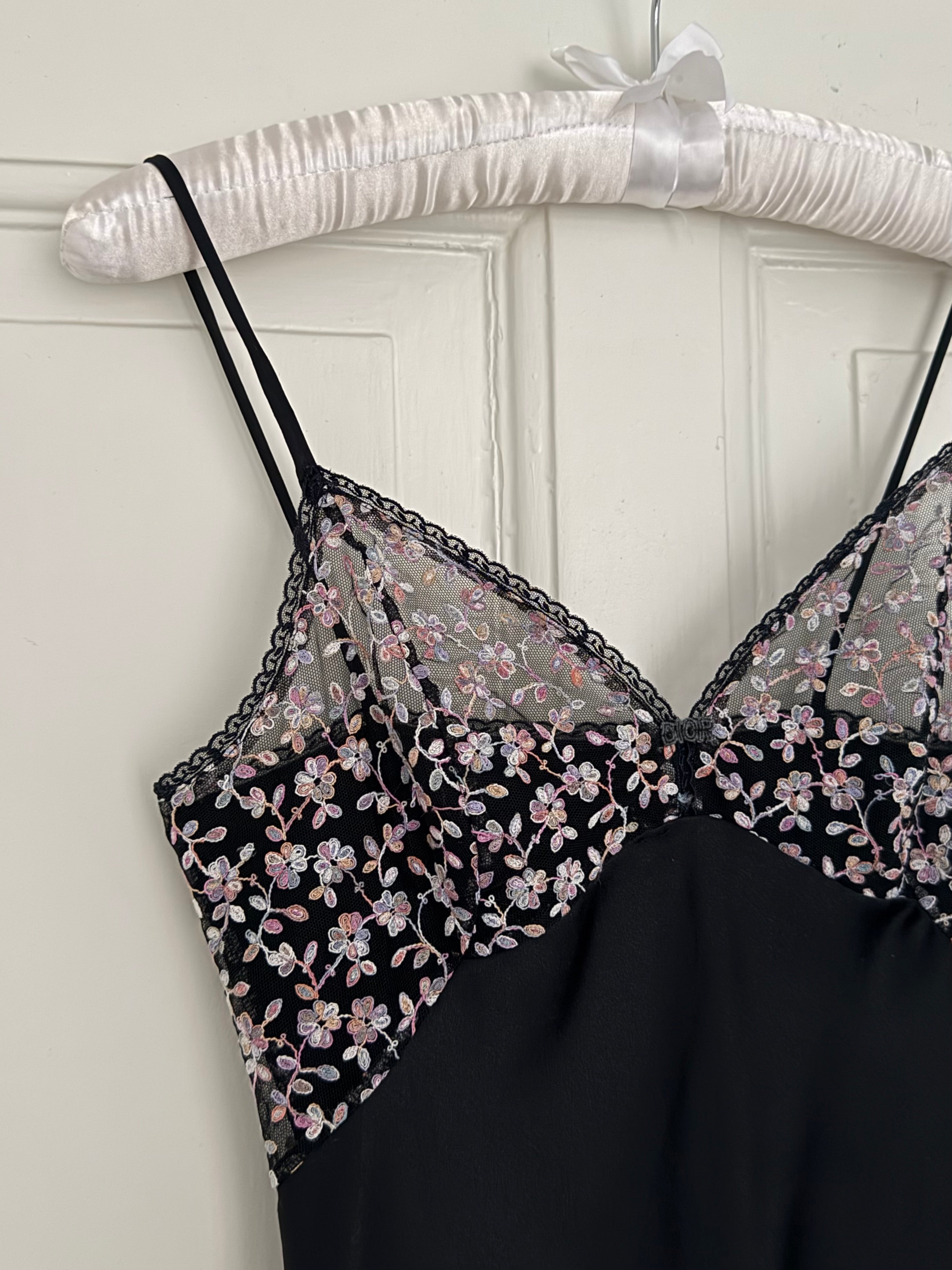Vintage Christian Dior lingerie short slip dress in black, featuring the most beautiful multicolour floral lace detailing.