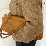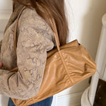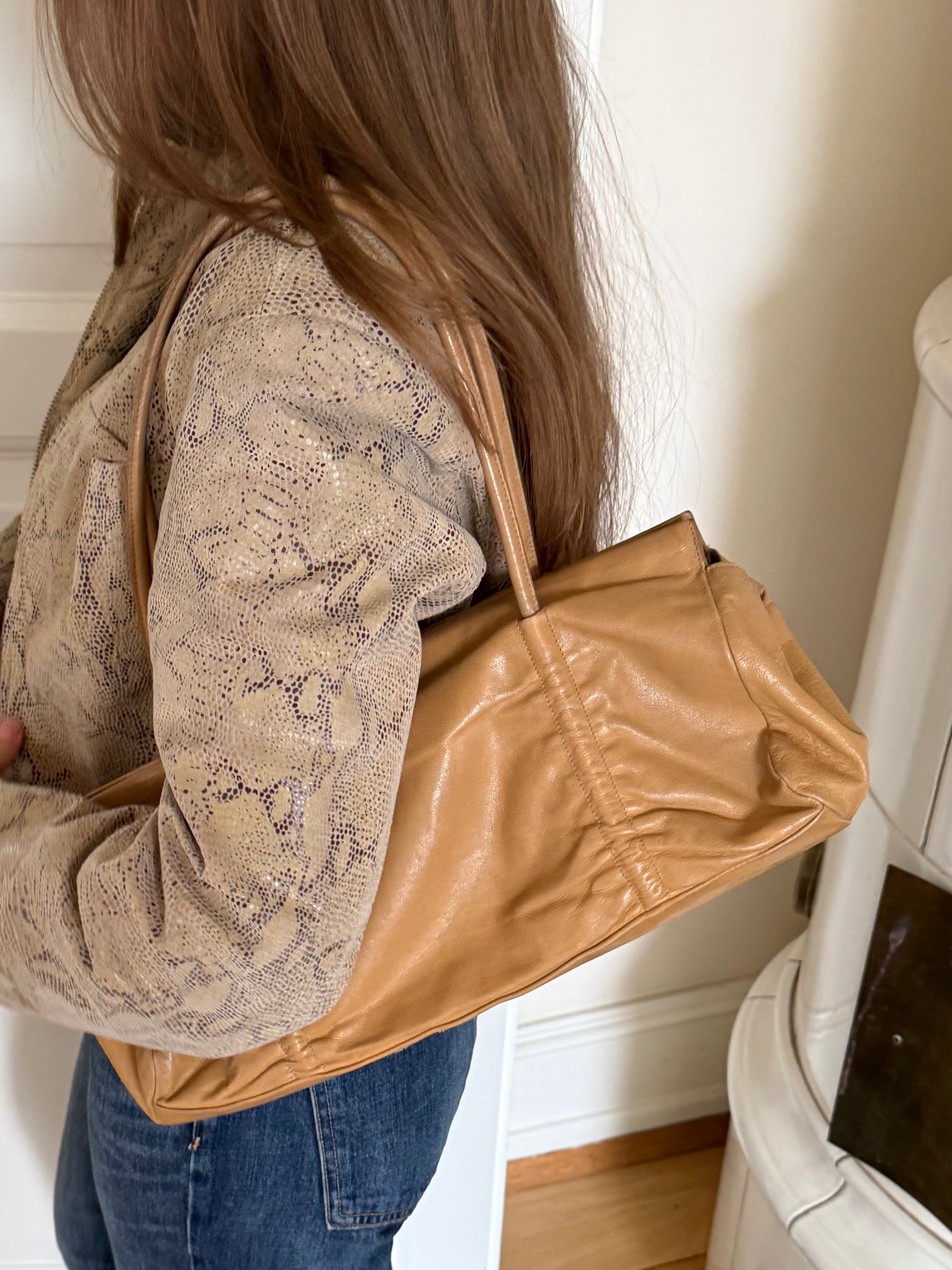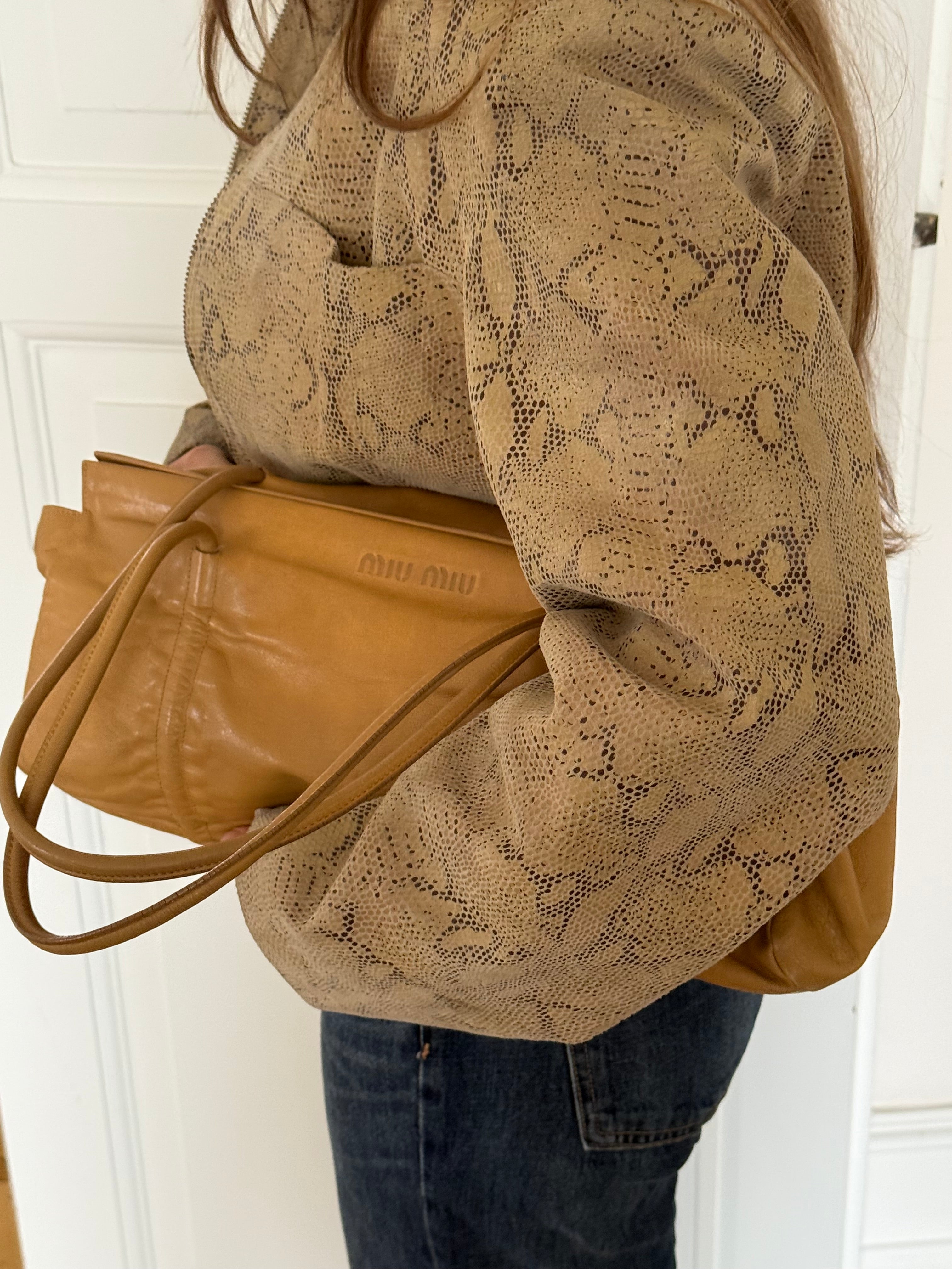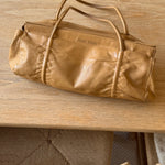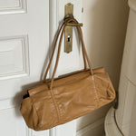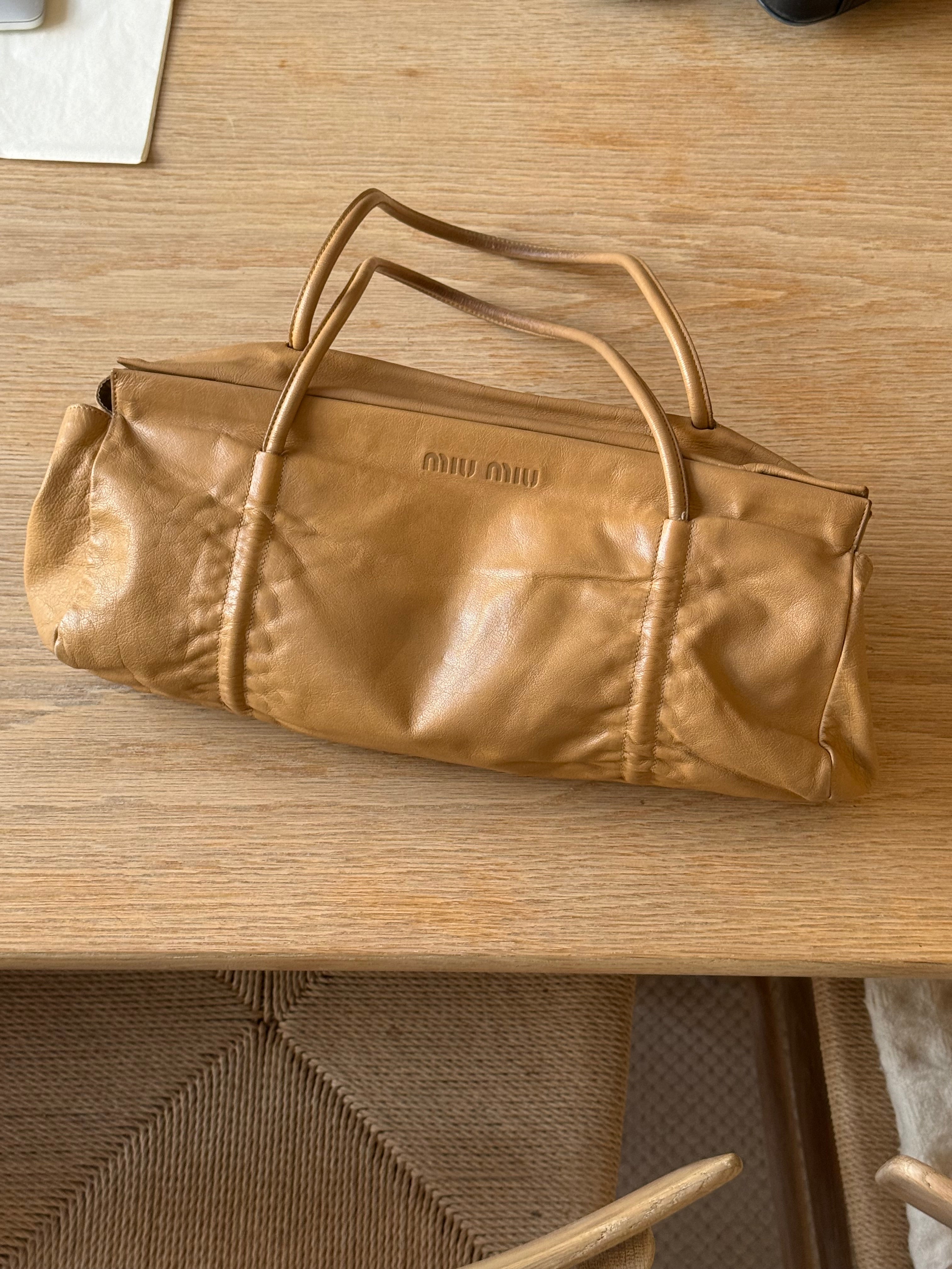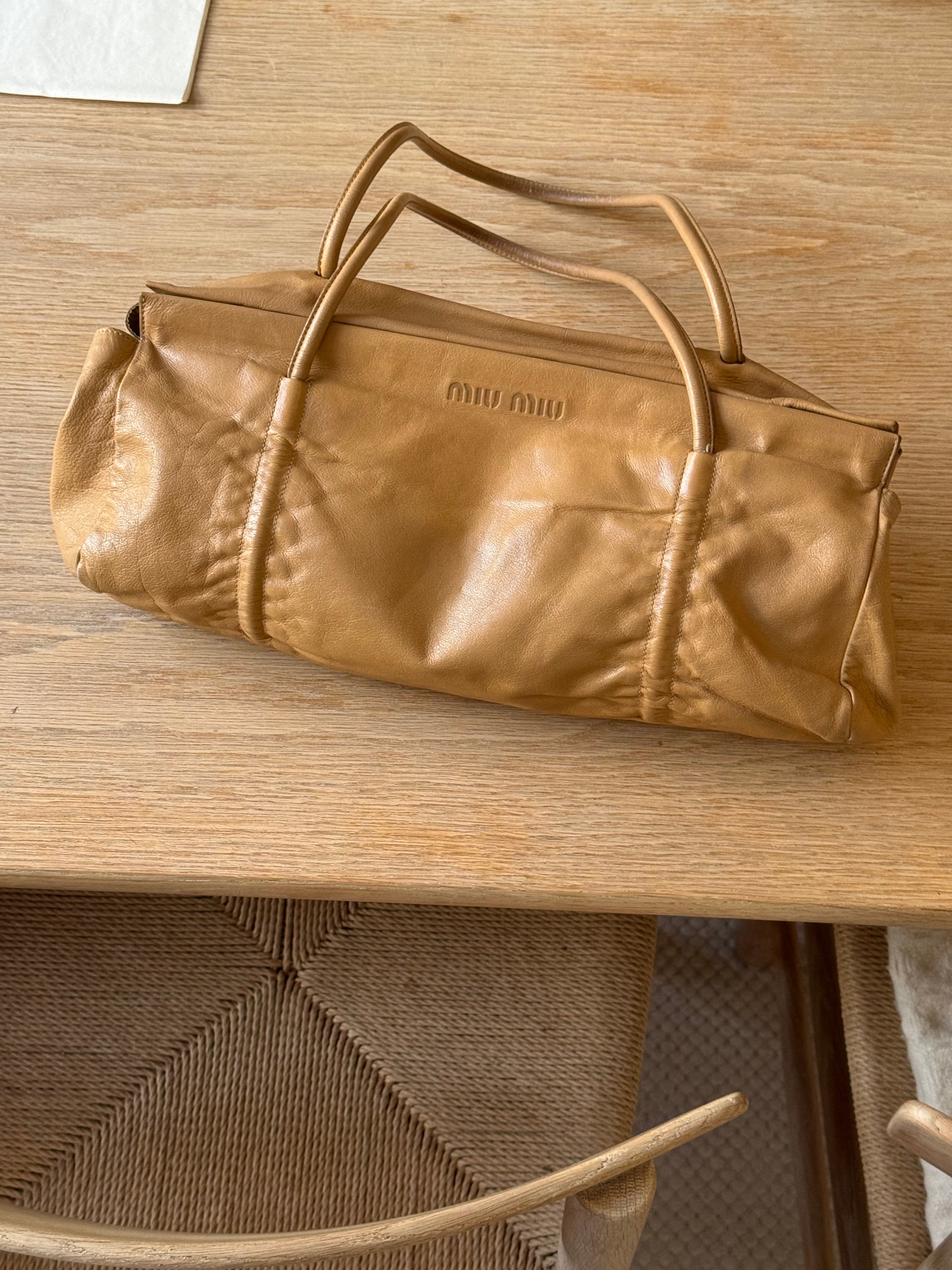 Rare archive Miu Miu shoulder bag in soft brown leather with embossed logo at the front and stud closure.