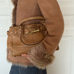 Vintage Coach Hamilton hobo bag crafted from soft brown pebbled leather with gold-tone hardware and signature horsebit detail. Features double handles and a spacious interior.