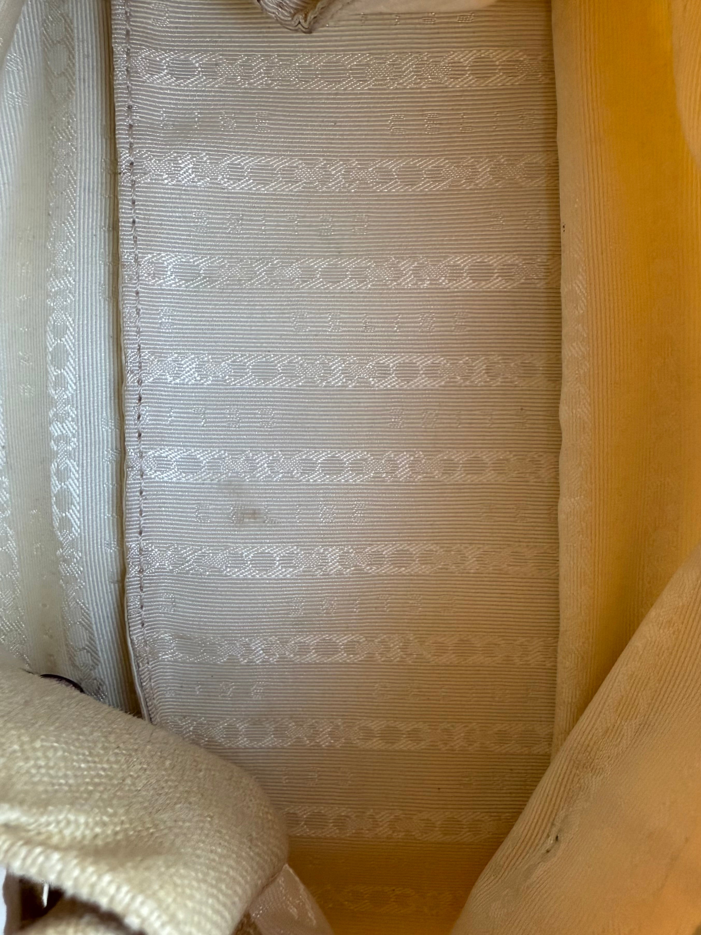 8.5/10 - In good vintage condition, but has to small spots on the inside of the handle and on the canvas.