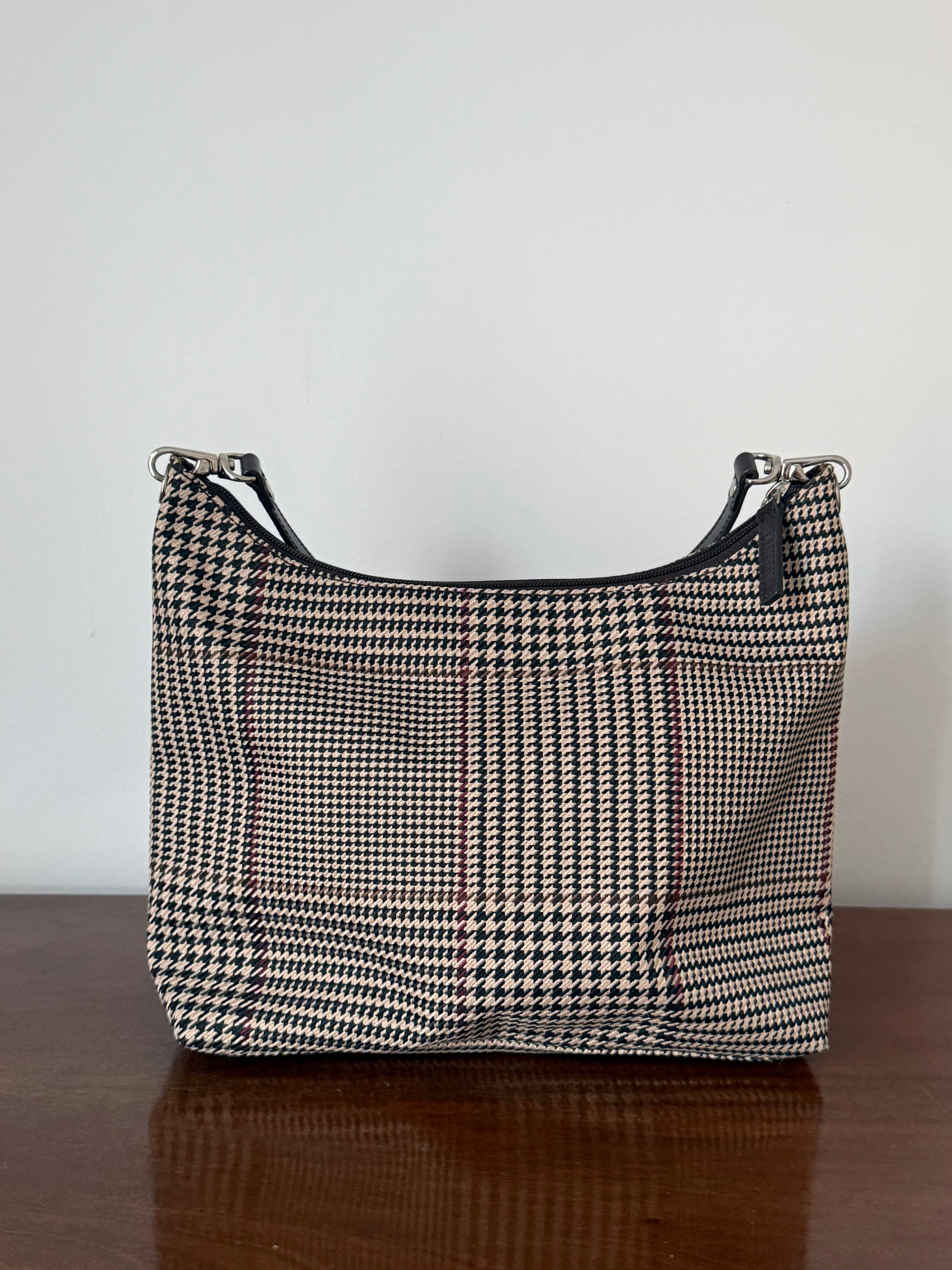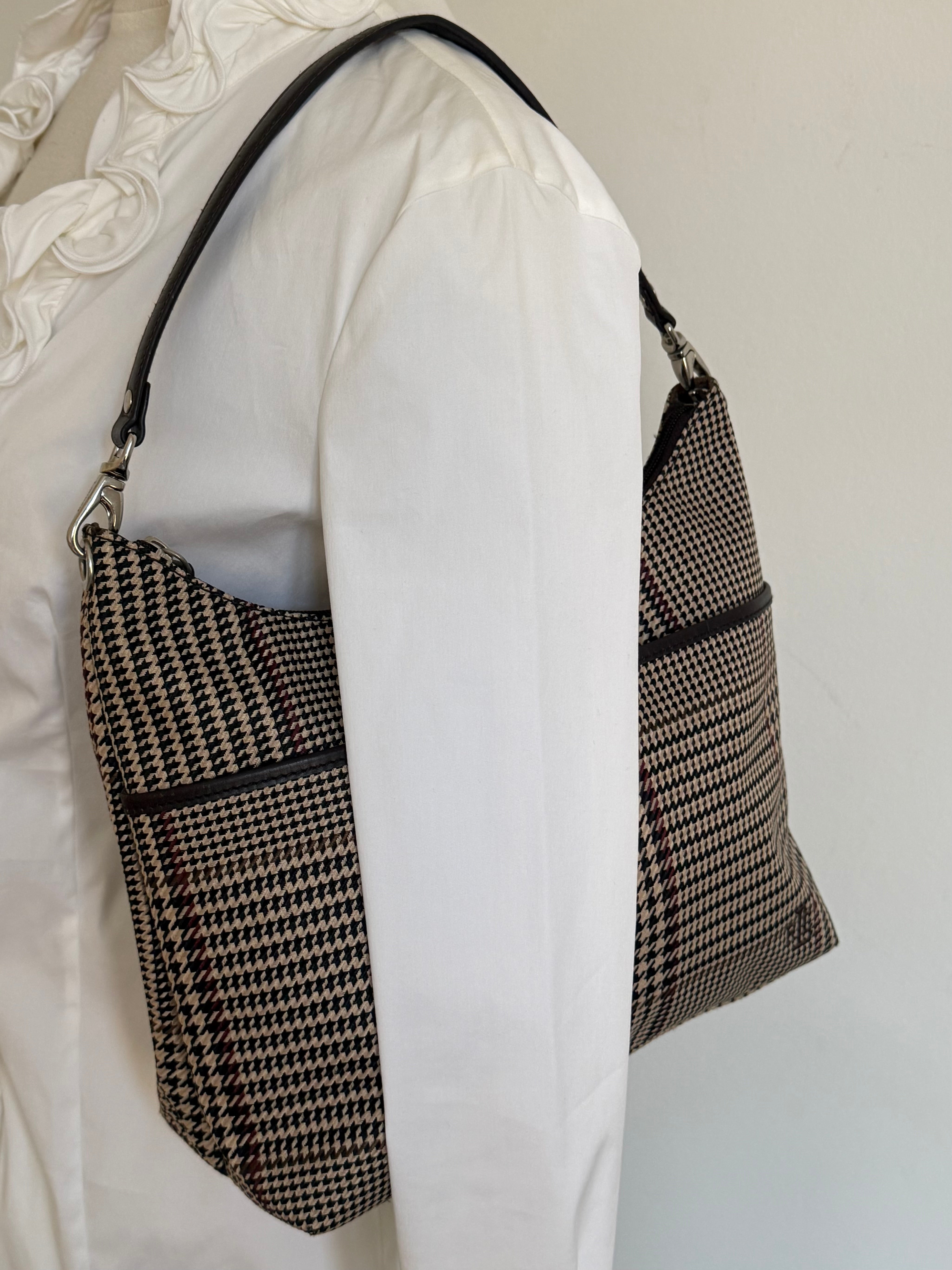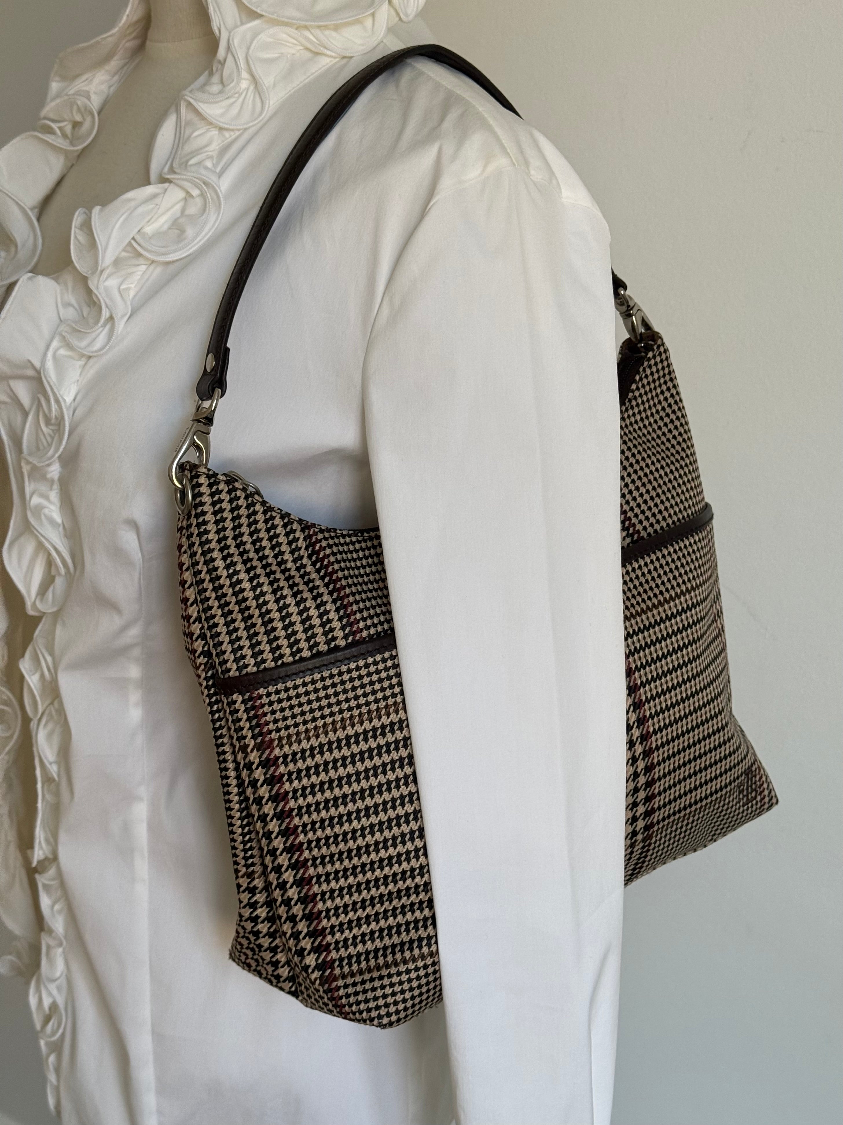 Vintage Ralph Lauren check shoulder bag with dark brown leather trim and handles.